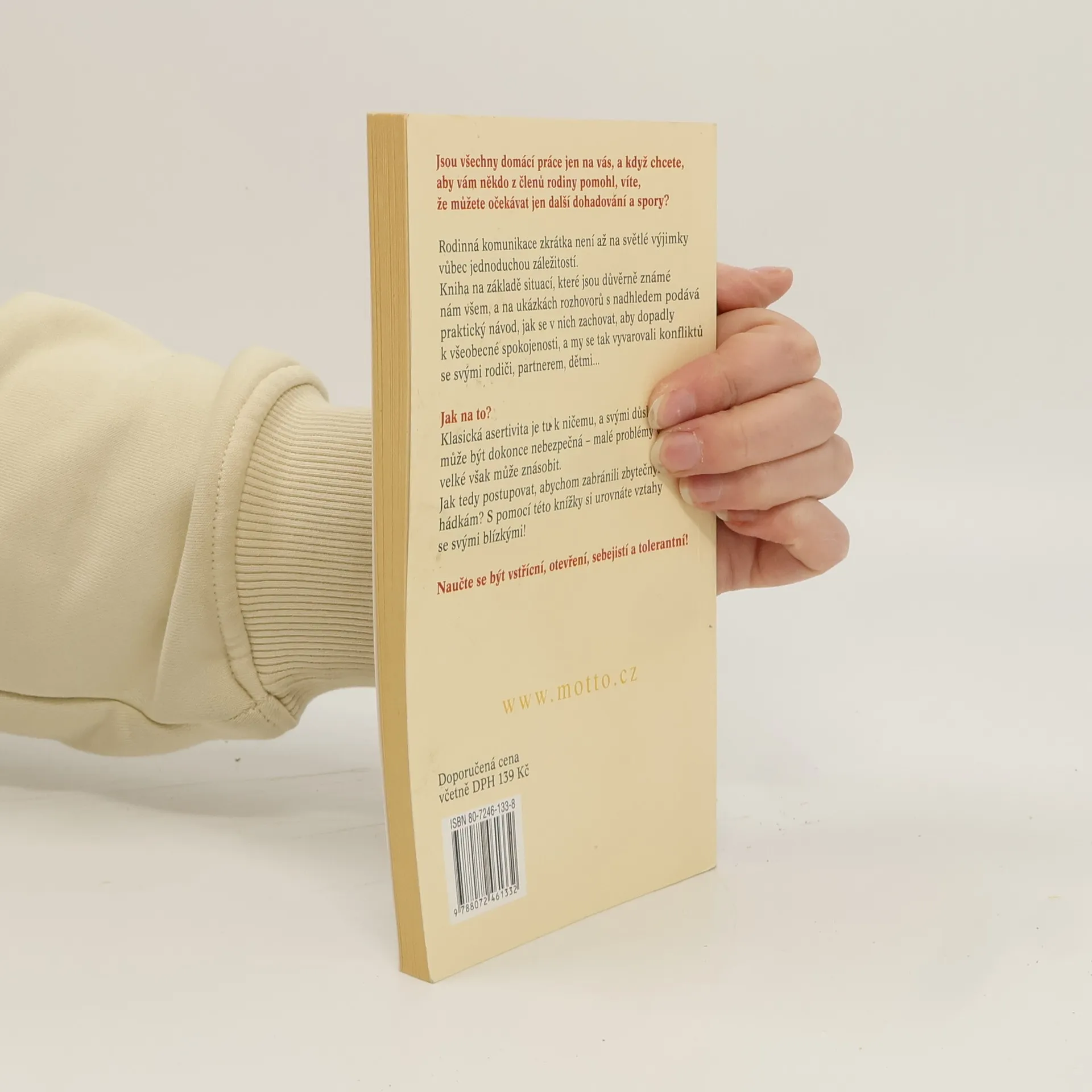 Rady a návody, jak uplatnit asertivní chování v rodinném a manželském životě. Autor prostřednictvím vtipných výkladů, popisů ukázkových rozhovorů a situací z manželského a rodinného života poskytuje cenné rady pro správnou komunikaci mezi životními partnery či rodiči a dětmi. Ukazuje asertivní jednání jako účinný prostředek pro zlepšení komunikace a atmosféry v rodině, ale stejně tak varuje před nesprávným užíváním asertivity, které naopak může rodinné vztahy spíše rozbít (manželství ve stylu koridy či partyzánské války s mottem "Už jsem tě dostal(a), ty darebáku!" neprospěje žádné zúčastněné straně). Agresivní asertivita je stejně škodlivá jako pasivita, potlačování afektů či mlčení. Proto je třeba si umět nejen říci o to, co chceme a co nechceme, odolat manipulaci (typické pro vztah starých rodičů a jejich dospělých dětí), ale musíme se také naučit jasně a přesně stanovit své cíle, které mají být reálné a přiměřené (nepořádný manžel se přes noc nezmění v hospodyňku a drzého pubescenta těžko ze dne na den donutíme k pravidelnému gruntování dětského pokoje proměněného v chlívek).