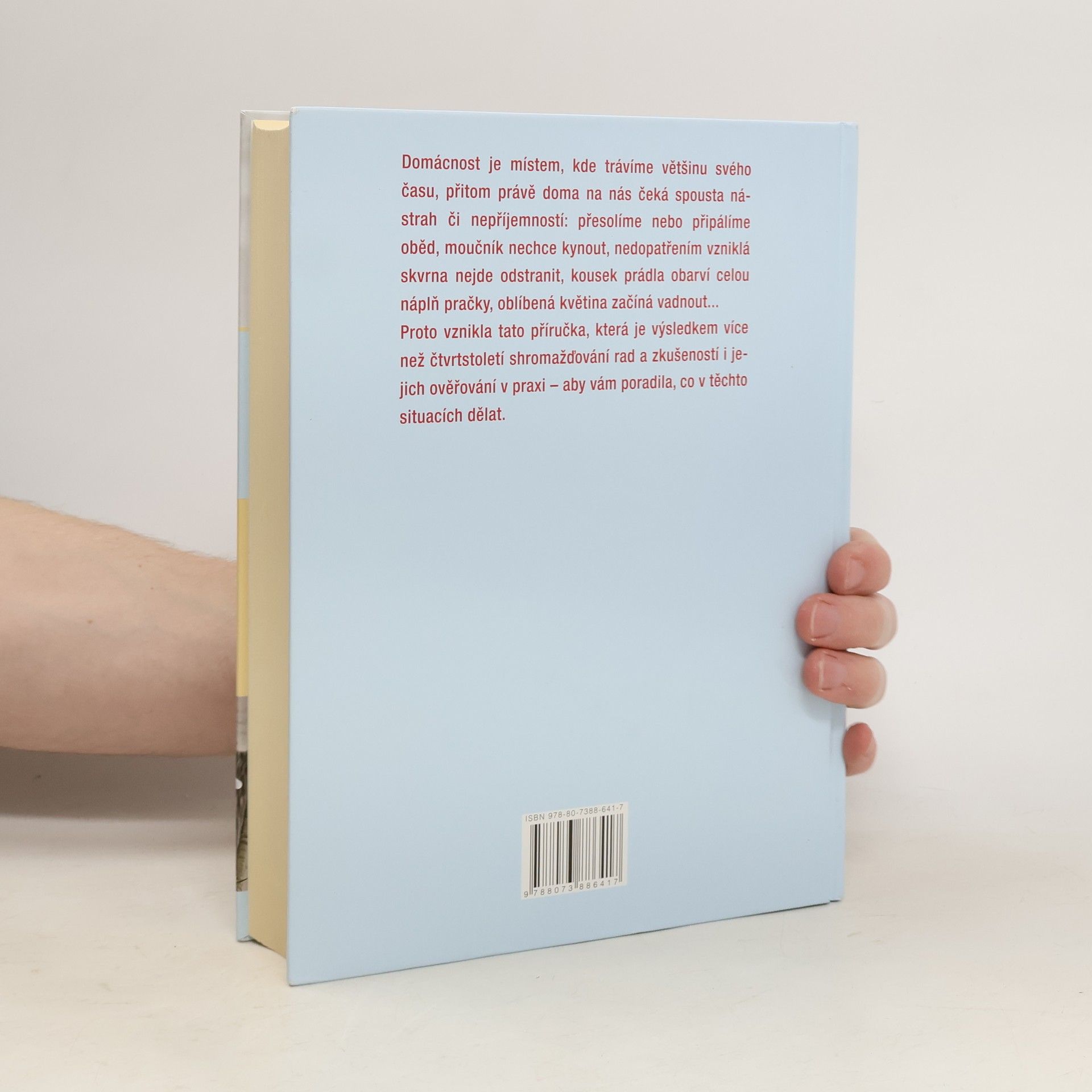 Domácnost je místem, kde trávíme většinu svého času, přitom právě doma na nás čeká spousta nástrah či nepříjemností: přesolíme nebo připálíme oběd, moučník nechce kynout, nedopatřením vzniklá skvrna nejde odstranit, kousek prádla obarví celou náplň pračky, oblíbená květina začíná vadnout... Proto vznikla tato příručka, která je výsledkem více než čtvrtstoletí dlouhého shromažďování rad a zkušeností i jejich ověřování v praxi – aby vám poradila, co v těchto situacích dělat.