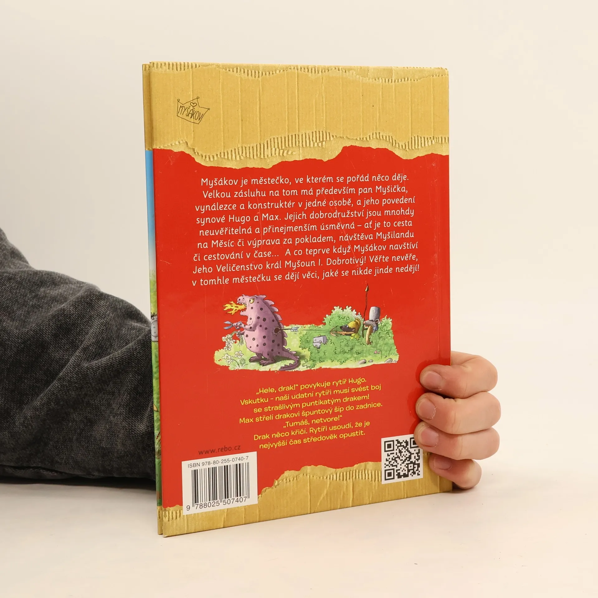 Myšákov je městečko, ve kterém se pořád něco děje. Velkou zásluhu na tom má především pan Myšička, vynálezce a konstruktér v jedné osobě, a jeho povedení synové Hugo a Max. Jejich dobrodružství jsou mnohdy neuvěřitelná a přinejmenším úsměvná - ať je to cesta na Měsíc či výprava za pokladem, návštěva Myšilandu či cestování v čase... A co teprve když Myšákov navštíví Jeho Veličenstvo král Myšoun I. Dobrotivý! Věřte nevěře, v tomhle městečku se dějí věci, jaké se nikde jinde nedějí! Knížky z edice Vítá vás Myšákov! malé čtenáře na první pohled zaujmou především vtipnými ilustracemi dokreslujícími humorné příhody myších obyvatel jednoho malého městečka.