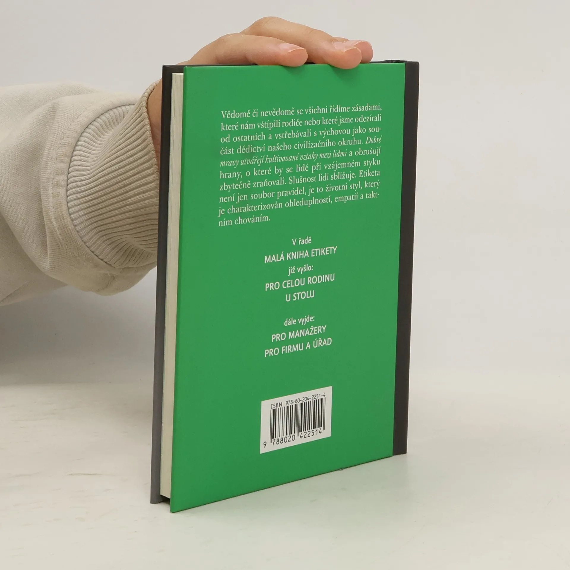 Praktický rádce do práce i do rodiny Ve třetím dílu série, Malé knize etikety pro každý den, se čtenář dozví, jak je to se společenskou nadřazeností, kdo se komu představuje a kdo komu nabízí ruku, zda lze odmítnout nabídku tykání a mnoho jiných rad pro každodenní situace.