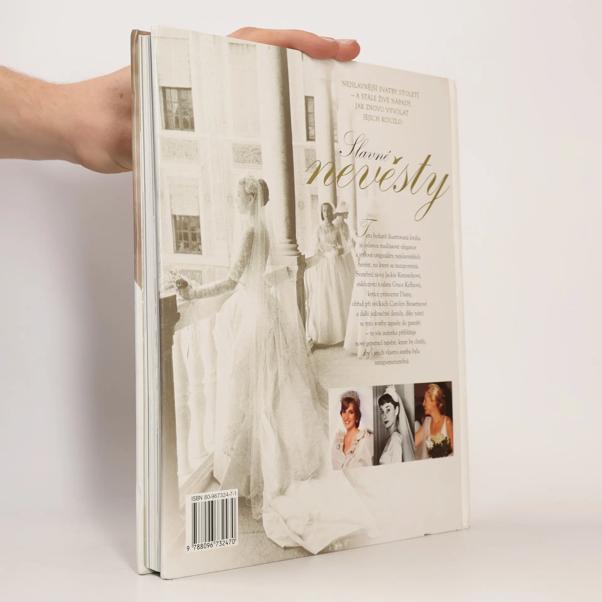 Podtitul: Nejromantičtější svatby všech dob, zdroj inspirace pro dnešní nevěsty. Tato bohatě ilustrovaná kniha je oslavou nadčasové elegance a stylové originality nejslavnějších nevěst, na které se nezapomíná. Svatební závoj Jackie Kennedyové, exkluzivní toaleta Grace Kellyové, kytice princezny Diany, obřad při svíčkách Carolyn Bessetteové a další jedinečné detaily, díky nimž se tyto svatby zapsaly do paměti - to vše autorka přibližuje nové generaci nevěst, které by chtěly, aby i jejich vlastní svatba byla nezapomenutelná.