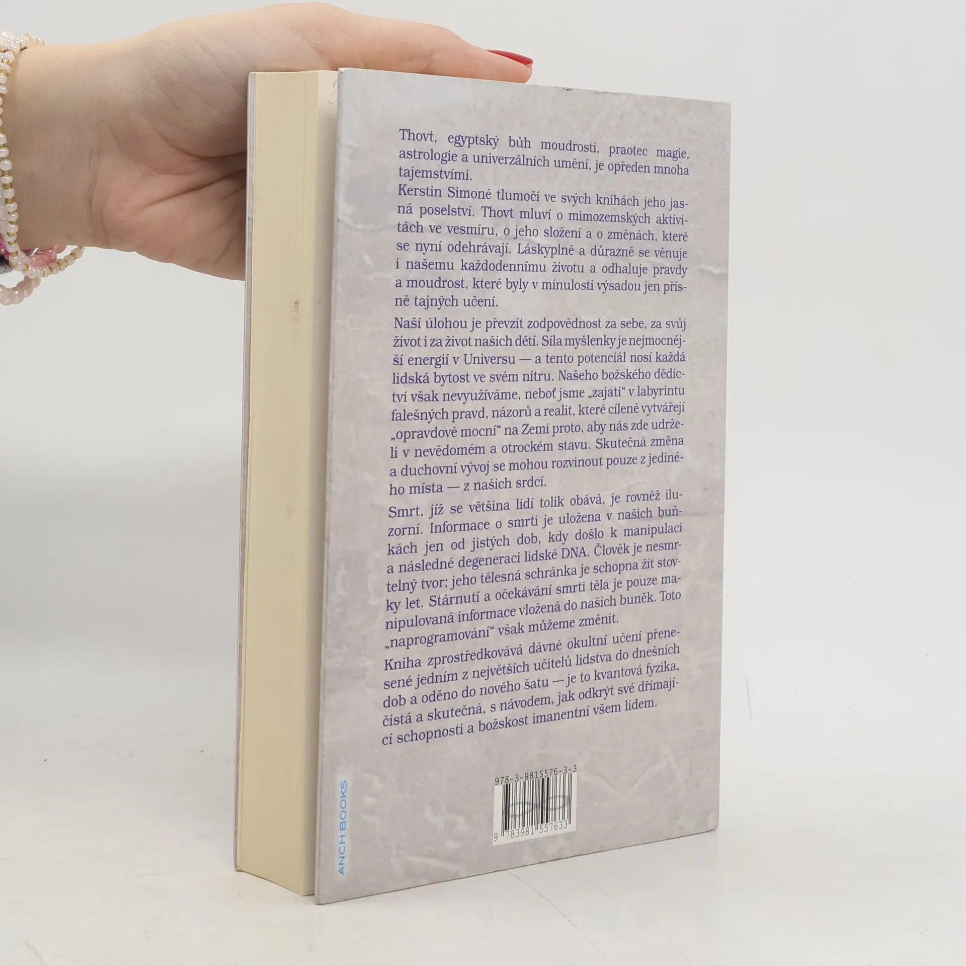 Thovt, egyptský bůh moudrosti, praotec magie, astrologie a univerzálních umění, je opředen mnoha tajemstvími. Kerstin Simoné tlumočí ve svých knihách jeho jasná poselství. Thovt mluví o mimozemských aktivitách ve vesmíru, o jeho složení a o změnách, které se nyní odehrávají. Láskyplně a důrazně se věnuje i našemu každodennímu životu a odhaluje pravdy a moudrost, které byly v minulosti výsadou jen přísně tajných učení. Naší úlohou je převzít zodpovědnost za sebe, za svůj život i za život našich dětí. Síla myšlenky je nejmocnější energií v Universu - a tento potenciál nosí každá lidská bytost ve svém nitru...