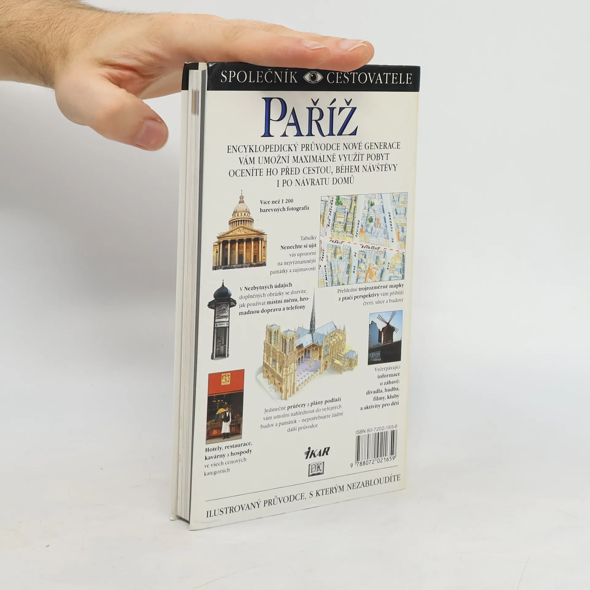 Paříž - společník cestovatele. Bohatě ilustrovaný turistický průvodce přináší vyčerpávající informace o nejnavštěvovanějších i neprávem opomíjených místech francouzské metropole i jejího nejbližšího okolí. Tato ediční řada má specifickou úpravu, využívá kreslených map, fotografií, schémat a vlastní systém vysvětlivek. Důležitý je i bohatý informační aparát, postihující např. možnosti ubytování nebo stravování. Vydání 1.