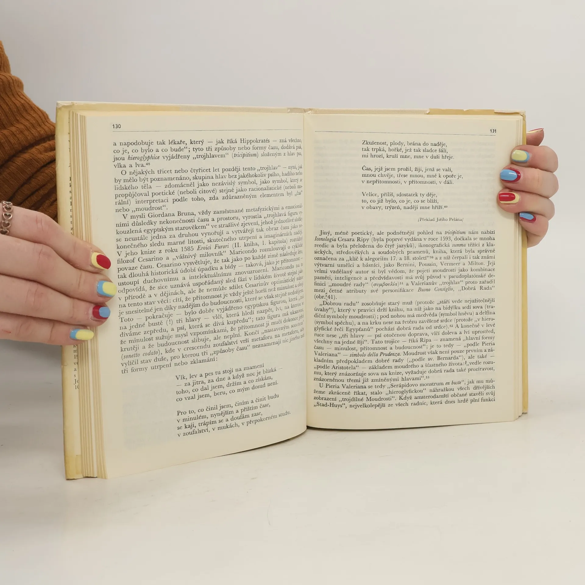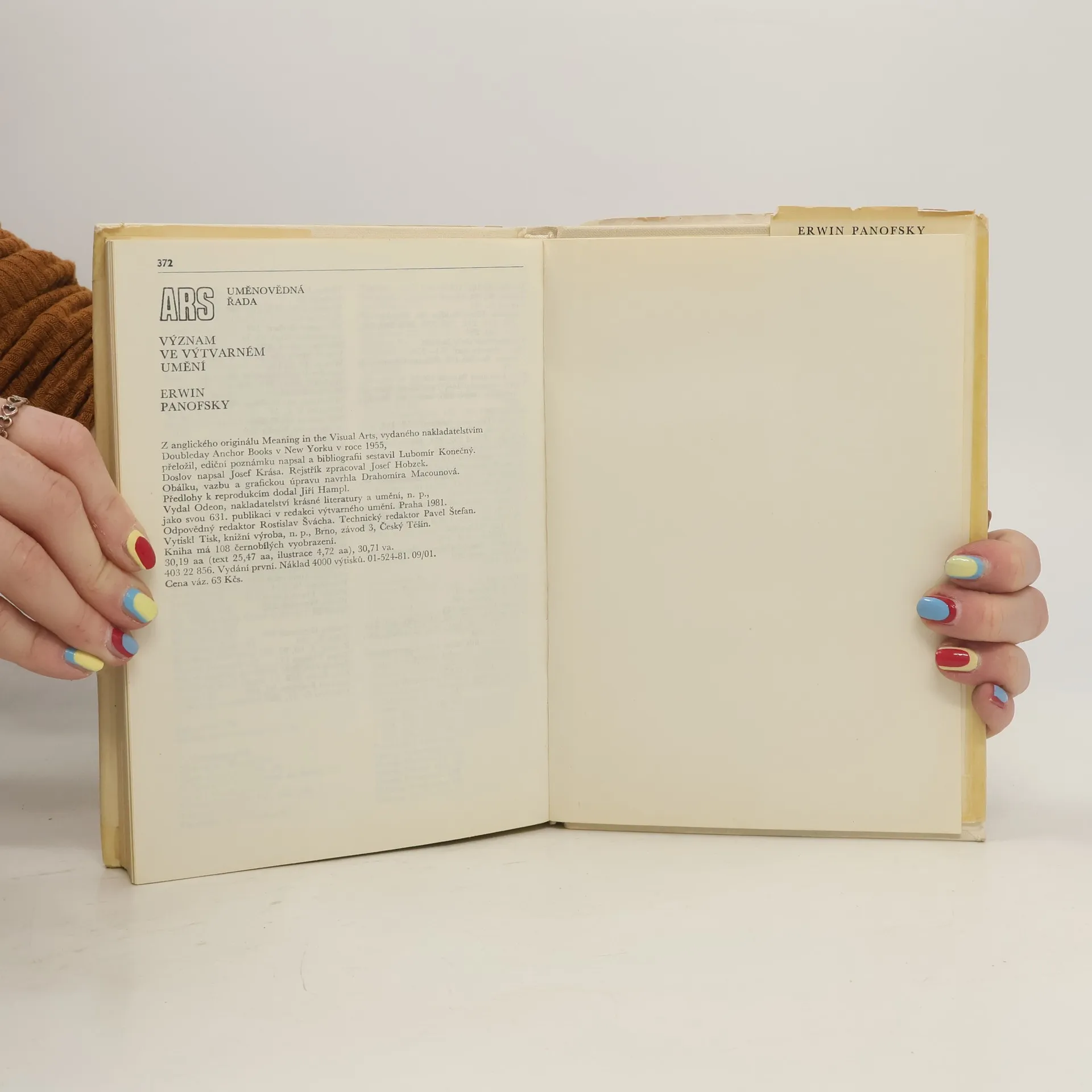 Kniha vynikajícího německo-amerického historika umění Erwina Panofského obsahuje kromě autorova úvodu a epilogu sedm statí. V instruktivní Ikonografii a ikonologii (1939) nás Panofsky seznamuje s hlavními zásadami své převratné uměleckohistorické metody, tzv. ikonologie, která skrze výzkum ikonografických námětů uměleckých děl odhaluje jejich „vnitřní význam neboli obsah“, tj. zkoumá způsob, „jakým byly za různících se historických podmínek prostřednictvím specifických témat a pojmů vyjadřovány podstatné tendence lidského myšlení“. S ikonologickou metodou tu Panofsky dále pracuje ve studiích o ideovém tvůrci gotického slohu opatu Sugerovi (1946), o Tizianově Alegorii Moudrosti (1926, 1930) a o Poussinově obrazu Et in Arcadia ego (1936). V dalších pracích, které autor zařadil do tohoto svazku, se věnuje dějinám teorií lidských proporcí (1921), vztahu italské renesance ke gotickému slohu (1930: problematika stati, doplněné exkursem o manýrismu v architektuře, se dotýká i českého tzv. gotizujícího baroka) a Dürerovu poměru ke klasickému starověku (1921 až 1922). Významem Erwina Panofského ve vývoji moderního dějepisu umění a souvislosmi jeho podnětných metod s uměnovědou u nás se zabývá doslov Josefa Krásy. Kniha je doprovázena 104 černobílými fotografiemi.