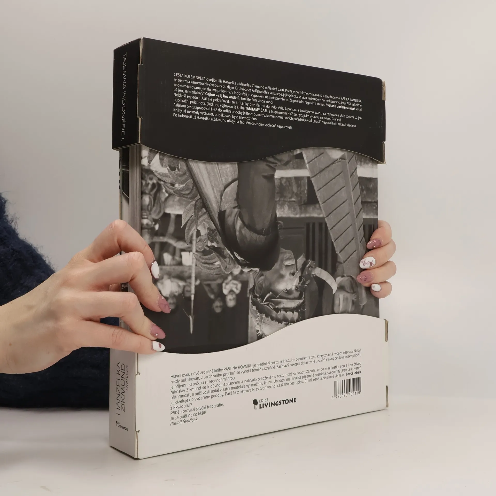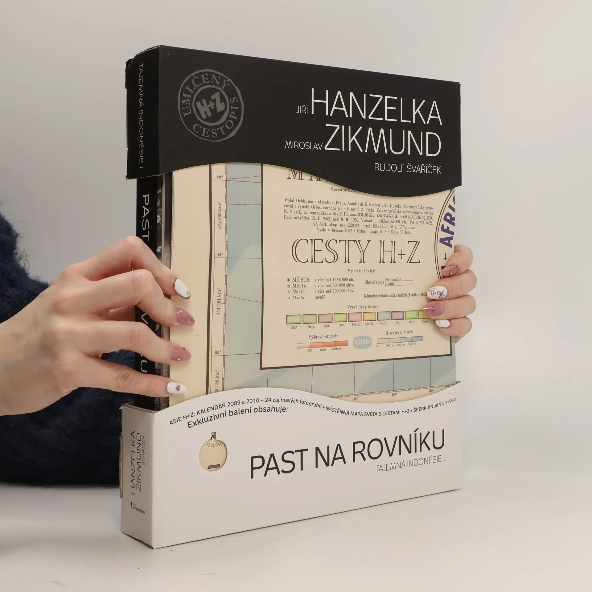 Detaily Cesta Jiřího Hanzelky a Miroslava Zikmunda kolem světa měla dvě části ta první, věnovaná Africe a Americe, je dokonale zpracovaná, ale cesta po Asii byla pro veřejnost zdokumentována jen zčásti. Než stačili autoři své dílo vydat celé, bylo jim znemožněno publikovat. V rukopise tak zůstal i text, který nyní vychází v knize Past na rovníku Tajemná Indonésie I. Je to zároveň poslední cestopis, který legendární dvojice společně napsala. Miroslav Zikmund se po letech k dávno napsanému a odloženému textu vrátil a ve spolupráci s cestovatelem Rudou Švaříčkem jej dopracoval a připravil k vydání. Exkluzivní balení knihy obsahuje: kalendář na 2 roky 2009 a 2010 (24 zajímavých fotografií) nástěnnou mapu světa s cestami H+Z šperk JIN JANG z Asie