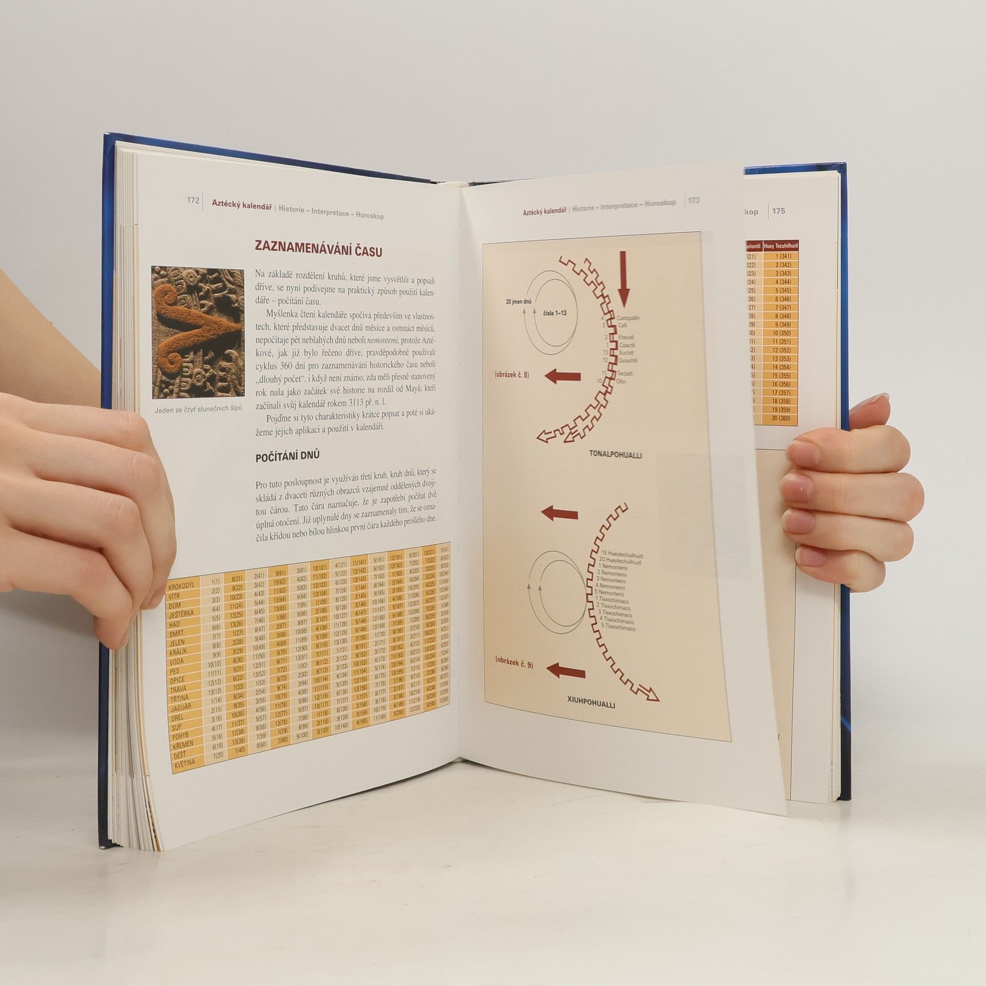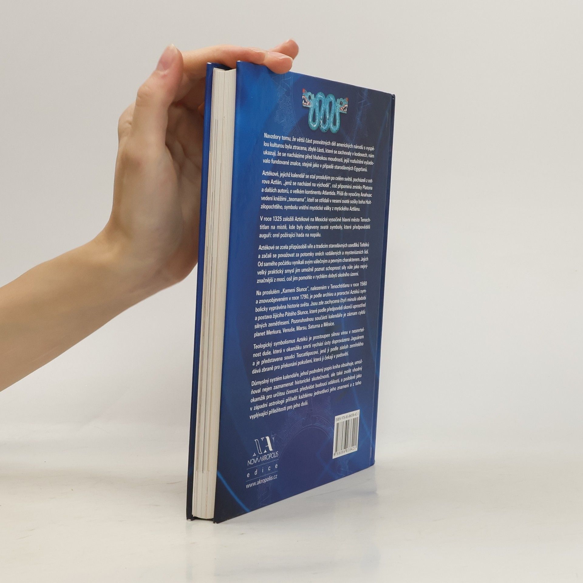 Tato na českém trhu ojedinělá kniha přivádí čtenáře do minulosti aztéckého národa a nabízí pohled do budoucnosti pod vedením Pátého Slunce. Obsahuje nádherné barevné fotografie z muzeí v Mexico City a z oblastí, kde Aztékové žili, spolu s kresbami z kodexů. Na 288 stránkách přináší podrobný rozbor života Aztéků a jejich kalendářního systému. I přes ztrátu většiny posvátných děl amerických národů s vyspělou kulturou nám zachované části v kodexech ukazují hlubokou moudrost, jejíž rozluštění vyžadovalo znalce, podobně jako u starodávných Egypťanů. Aztékové, pocházející z ostrova Aztlán, přišli do vysočiny Anahuac vedení kněžími, kteří nosili sošku boha Huitzilopochtliho, symbol vnitřní mystické války. V roce 1325 založili hlavní město Tenochtitlan na místě, kde byly objeveny svaté symboly. Aztékové se přizpůsobili víře a tradicím Toltéků a považovali se za jejich potomky. Vynikali válečným charakterem a schopností síly vůle, což jim pomohlo v rychlém dobytí okolního území. "Kamen Slunce" symbolicky vypráví historii světa a zachycuje čtyři minulá období a postavu Pátého Slunce. Kalendář obsahuje záznam cyklů planet a teologický symbolismus Aztéků, který je prostoupen vírou v nesmrtelnost duše. Důmyslný systém kalendáře umožňoval zaznamenat historické události a předvídat budoucnost, přičemž přiřazoval jednotlivcům jejich znamení a příležitosti pro duši.