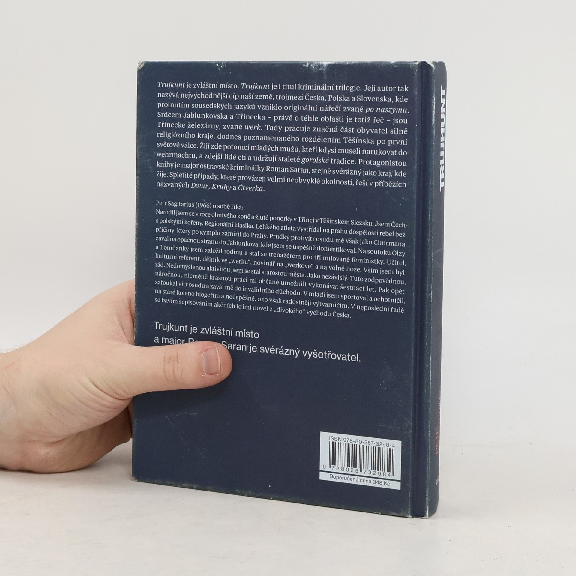 Trujkunt je zvláštní místo. Trujkunt je i titul kriminální trilogie. Její autor tak nazývá nejvýchodnější cíp naší země, trojmezí Česka, Polska a Slovenska, kde prolnutím sousedských jazyků vzniklo originální nářečí zvané po naszymu. Srdcem Jablunkovska a Třinecka – právě o téhle oblasti je totiž řeč – jsou Třinecké železárny, zvané werk. Tady pracuje značná část obyvatel silně religiózního kraje, dodnes poznamenaného rozdělením Těšínska po první světové válce. Žijí zde potomci mladých mužů, kteří kdysi museli narukovat do wehrmachtu, a zdejší lidé ctí a udržují staleté gorolské tradice. Protagonistou knihy je major ostravské kriminálky Roman Saran, stejně svérázný jako kraj, kde žije. Spletité případy, které provázejí velmi neobvyklé okolnosti, řeší v příbězích nazvaných Dwur, Kruhy a Čtverka.