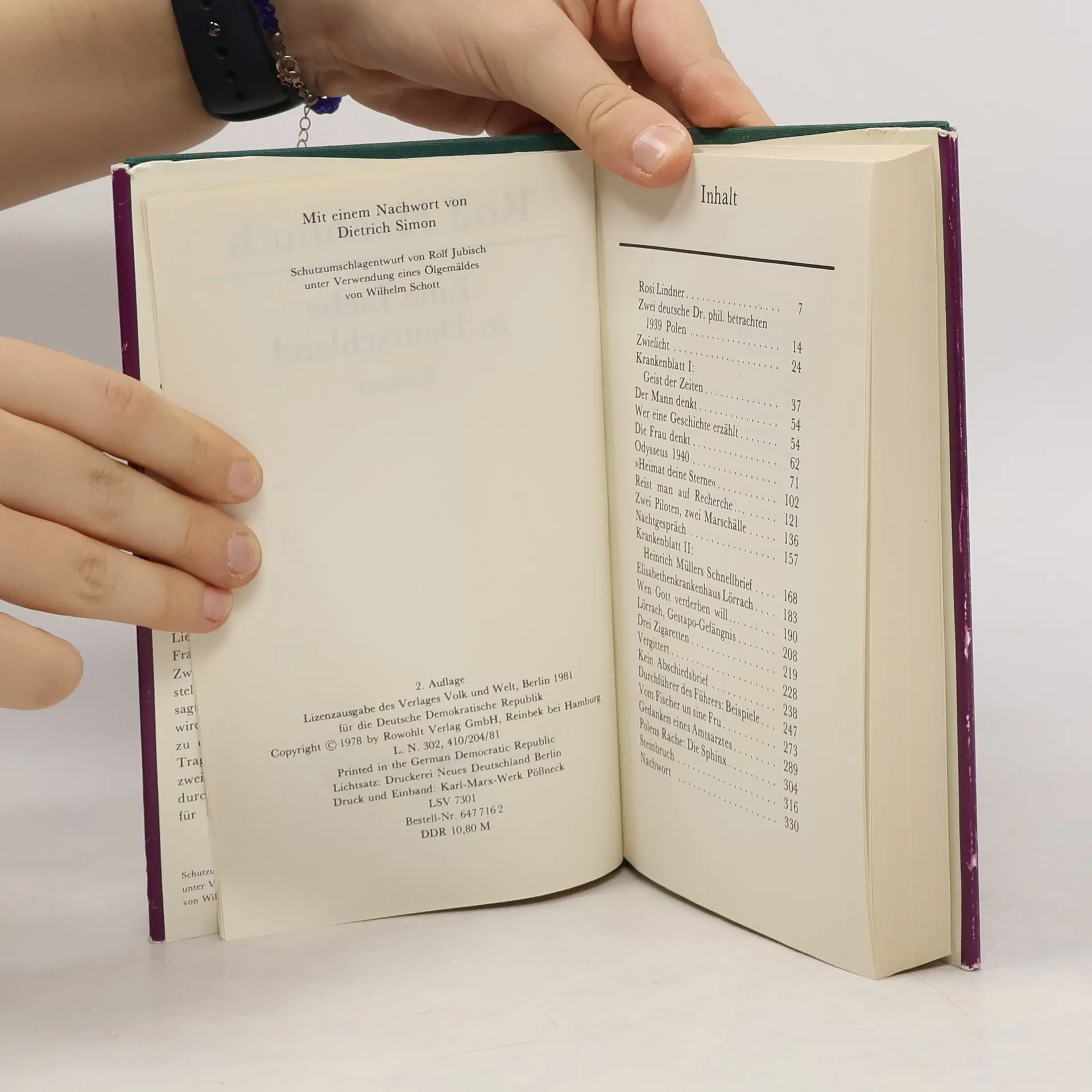 Die Geschichte erzählt von der Liebe einer deutschen Gemüsefrau und einem polnischen Kriegsgefangenen in einem scheinbar idyllischen badischen Dorf, die sich im Hitler-Krieg ereignet hat. Hochhuth stellt hier Politik nicht an jenen Personen dar, die sie machen, sondern an den „kleinen Leuten“, mit denen Politik gemacht wird. Ein vorabgedrucktes Kapitel aus dieser tragischen Erzählung wurde zum Gegenstand eines Prozesses, der den Sturz eines „furchtbaren Juristen“ und Ministerpräsidenten zur Folge hatte und Hochhuth zu seinem vielgespielten Drama „Juristen“ anregte.