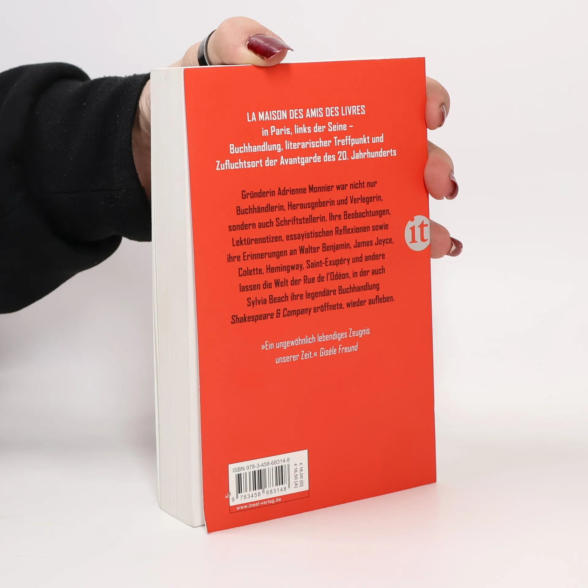 Buchhandlung, literarischer Treffpunkt und Zufluchtsort der Avantgarde des 20. Jahrhunderts – La Maison des Amis des Livres in Paris links der Seine. Gründerin Adrienne Monnier war nicht nur Buchhändlerin, Herausgeberin und Verlegerin, sondern auch Schriftstellerin. Ihre Aufzeichnungen lassen die Welt der Rue de l’Odéon, in der fünf Jahre nach ihr auch Sylvia Beach die ebenfalls legendär gewordene Buchhandlung Shakespeare & Company eröffnet hat, wieder lebendig werden – mit Betrachtungen zum Beruf der Buchhändlerin, Lektürenotizen, essayistischen Reflexionen sowie ihren Erinnerungen an Sylvia Beach, Walter Benjamin, Bryher, Joyce, Colette, Hemingway, Saint-Exupéry, Valéry, Gisèle Freund und anderen, die Adrienne Monnier als kluge Beobachterin und große Porträtistin sichtbar werden lassen.