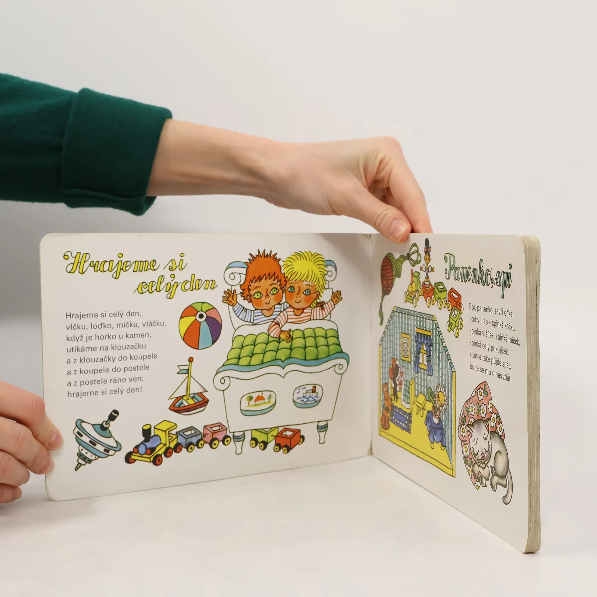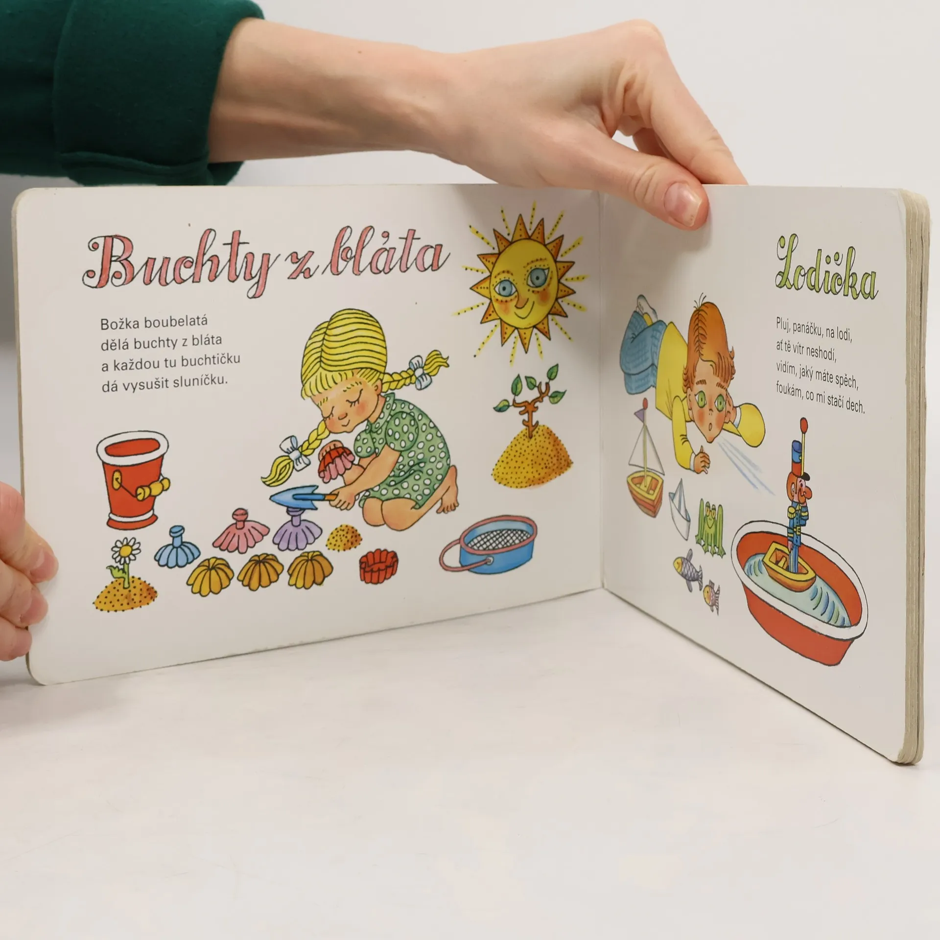 Leporelo s říkadly Františka Hrubína a ilustracemi známé dětské malířky Heleny Zmatlíkové. Pro děti od 2 let. 10. vydání.