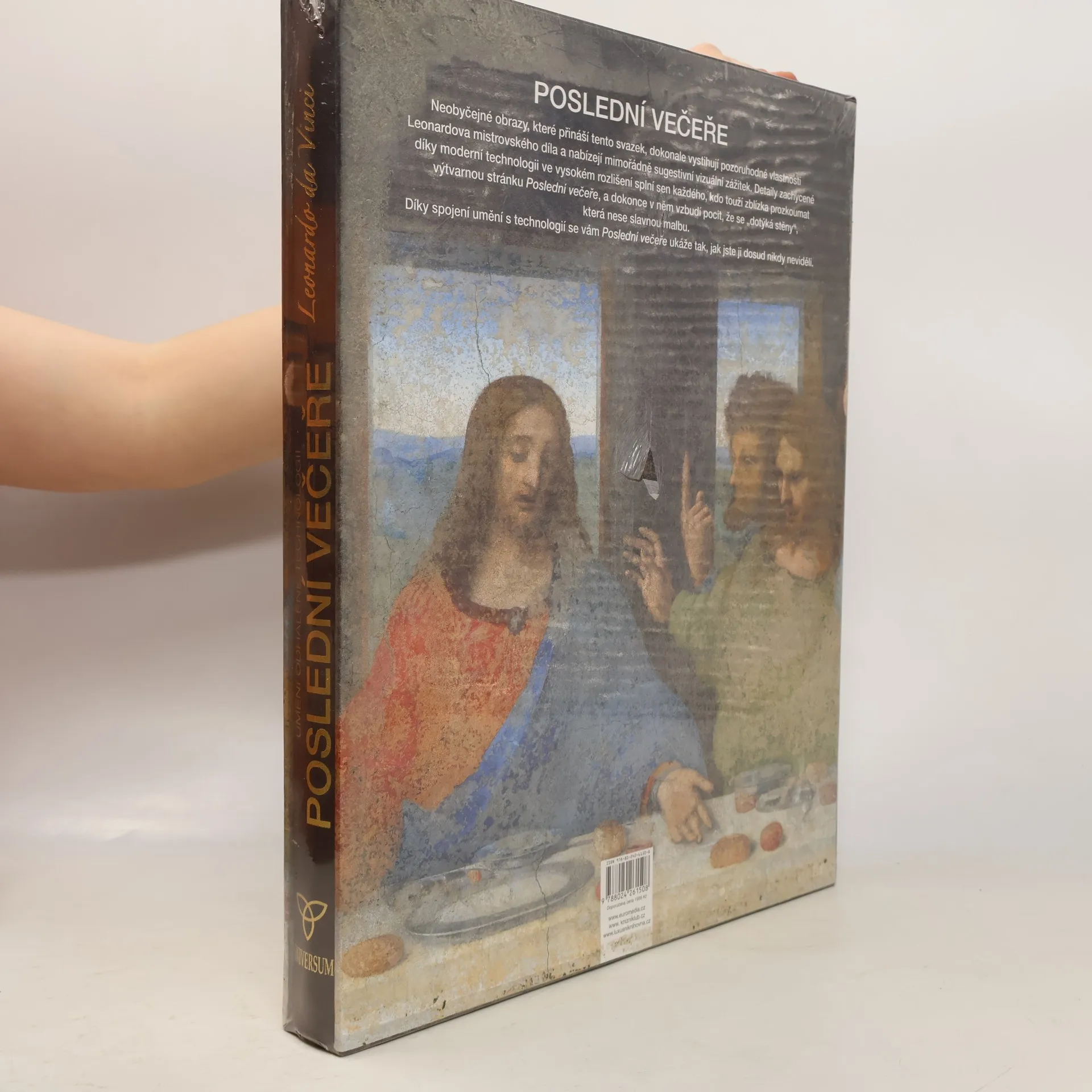 Poslední večeře Leonarda da Vinci je jedním z nejpozoruhodnějších děl dějin umění – a ačkoli jde kvůli unikátní technice o dílo velmi křehké a zranitelné, právě ona malíři zároveň umožnila dosáhnout pozoruhodných světelných efektů a přesnosti malby, kterou je nejlepší pozorovat zblízka. Takový pohled nabízí tato jedinečná publikace: exkluzivní digitální zvětšeninu malby ve velkém rozlišení, která zachycuje i ty nejdrobnější detaily, pouhým okem nerozpoznatelné, v jejich plné kráse. Při listování knihou můžete obdivovat tak, jak to dosud nikdy možné nebylo, realistické výrazy ve tvářích jednotlivých apoštolů, pohyby a pozice jejich rukou i nejmenší podrobnosti prostřeného stolu.