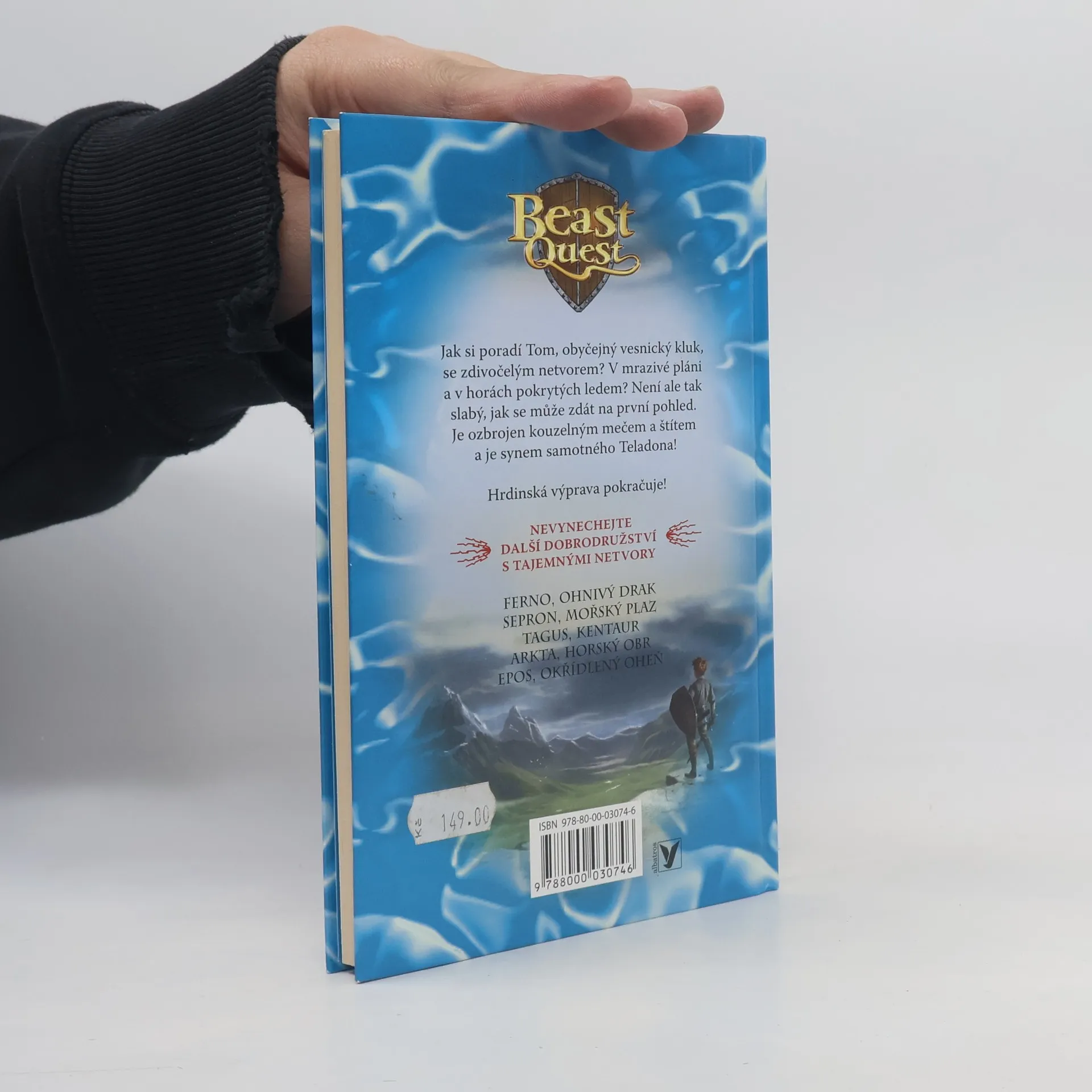 Jak si poradí Tom, obyčejný vesnický kluk, se zdivočelým netvorem? V mrazivé pláni a v horách pokrytých ledem? Není ale tak slabý, jak se může zdát na první pohled. Je ozbrojen kouzelným mečem a štítem a je synem samotného Teladona! Hrdinská výprava pokračuje! Další díly z řady Beast Quest: Ferno, ohnivý drak (1.díl) Sepron, mořský plaz (2. díl)…