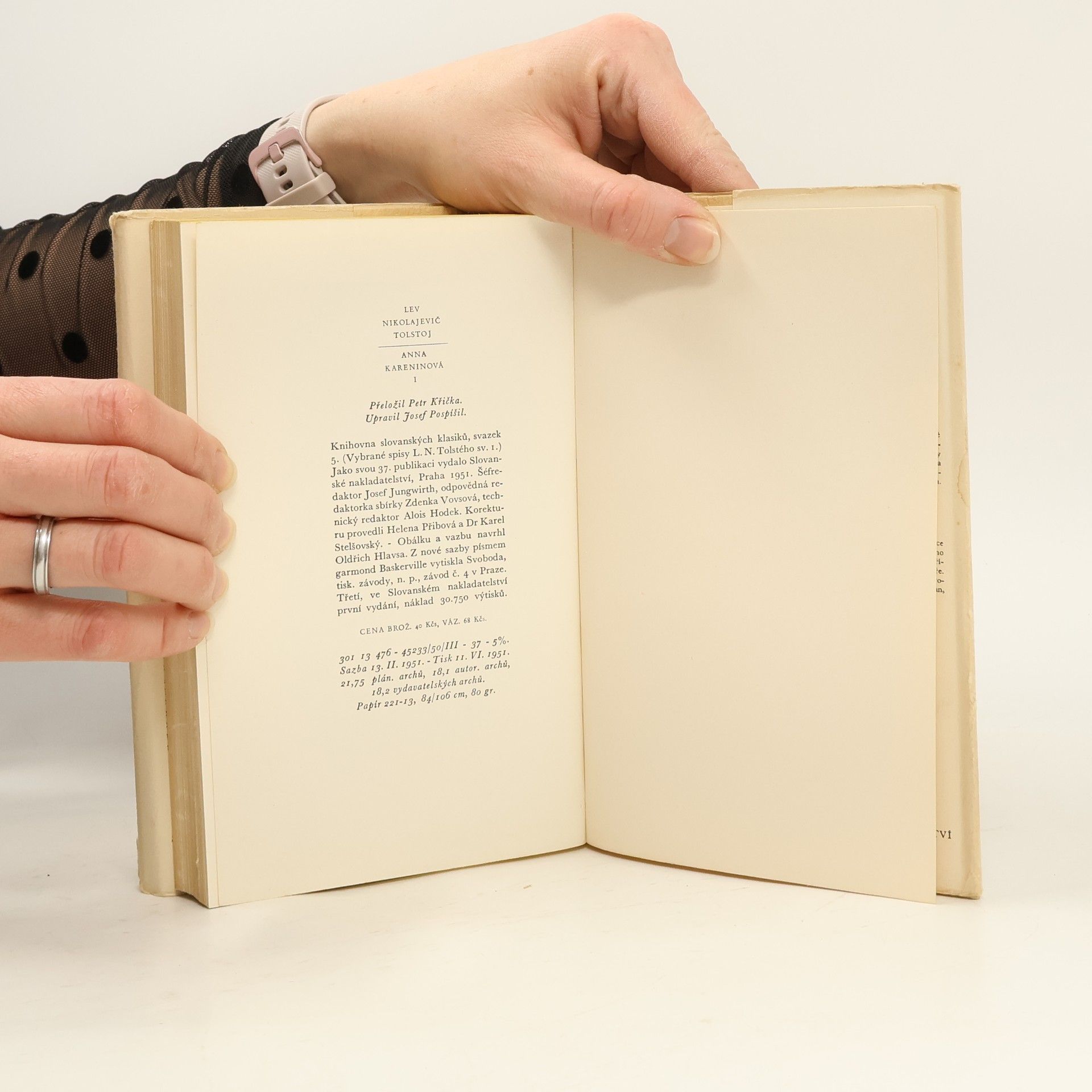 1. svazek 348s. 2. svazek 420s. 3. svazek 356s. Třísvazkové vydání. Všechny šťastné rodiny jsou si podobné, každá nešťastná rodina je nešťastná po svém. Výmluvný postřeh giganta ruského realistického románu Lva Nikolajeviče Tolstého otevírá jedno z nejslavnějších psychologických děl v dějinách literatury, v němž si spisovatel po monumentální fresce Vojna a mír dopřál komornější zápletku a dalekosáhlým přetvořením látek módních romancí vyjádřil odpor k pseudomorálce „vyšších kruhů“. Inspirován skutečnou událostí, kdy se spořádaně vyhlížející mladá dáma vrhla pod kola nákladního vlaku, vytvořil Tolstoj příběh o skandálním poklesku „dobře provdané“ krasavice, která je přinucena váhat mezi salonním životem v nelásce a přirozeným právem na štěstí. Vzplanutí choti carského hodnostáře k důstojníku Vronskému, jež spisovatel umně proplétá s osudy a krizemi dalších příbuzných a přátel, je pro Annu o to tragičtější, že na rozdíl od dobových mravokárců nedovede být pokrytecká a milostný poměr ani jeho následky netají.