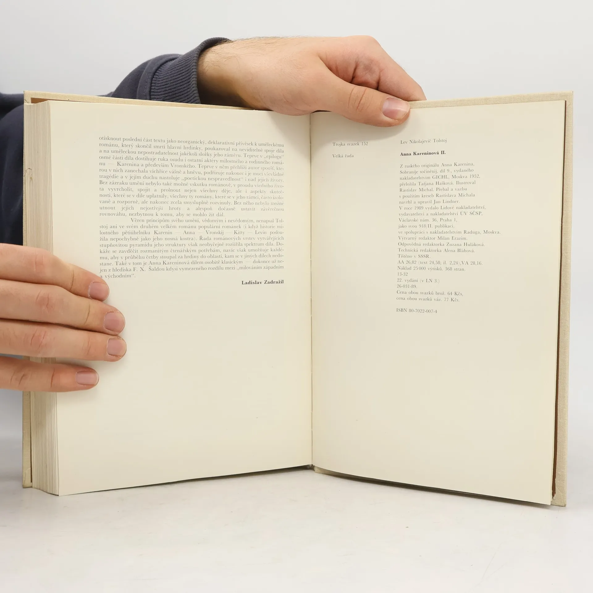 Všechny šťastné rodiny jsou si podobné, každá nešťastná rodina je nešťastná po svém. Výmluvný postřeh giganta ruského realistického románu otevírá jedno z nejslavnějších psychologických děl v dějinách literatury, v němž si spisovatel po monumentální fresce Vojna a mír dopřál komornější zápletku a dalekosáhlým přetvořením látek módních romancí vyjádřil odpor k pseudomorálce „vyšších kruhů". Inspirován skutečnou událostí, kdy se spořádaně vyhlížející mladá dáma vrhla pod kola nákladního vlaku, vytvořil Tolstoj příběh o skandálním poklesku „dobře provdané" krasavice, která je přinucena váhat mezi salonním životem v nelásce a přirozeným právem na štěstí. Vzplanutí choti carského hodnostáře k důstojníku Vronskému, jež spisovatel umně proplétá s osudy a krizemi příbuzných a přátel, je pro Annu o to tragičtější, že na rozdíl od dobových mravokárců nedovede být pokrytecká a milostný poměr ani jeho následky netají.