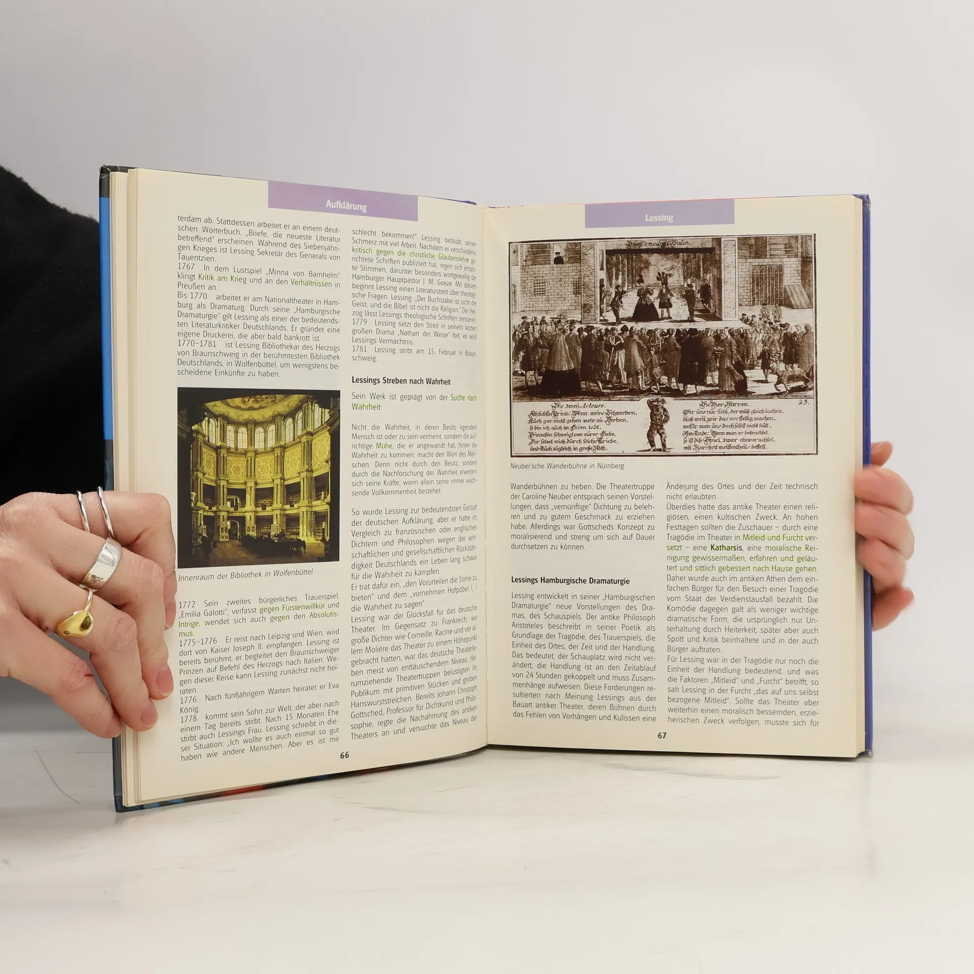 Von der Jugenliteratur über die Althochdeutsche Dichtung, die Mittelhochdeutsche Dichtung, vom Spätmittelalter zur Reformation, den Barock, der Aufklärung, der Sturm und Drangzeit, der Klassik, zwischen Klassik und Romantik, der Romantik, des Biedermeier und jungen Deutschland, den Realismus, den Naturalismus, der Literatur zu Beginn des 20. Jahrhhunderts den Expressionismus, der Literatur zur Zeit der Weimarer Republik, der deutschen Literatur im Exil, dem Umgang mit dem Entsetzlichen, auf dem Weg in die Wohlstandsgesellschaft bis zur Literatur der Gegenwart.
