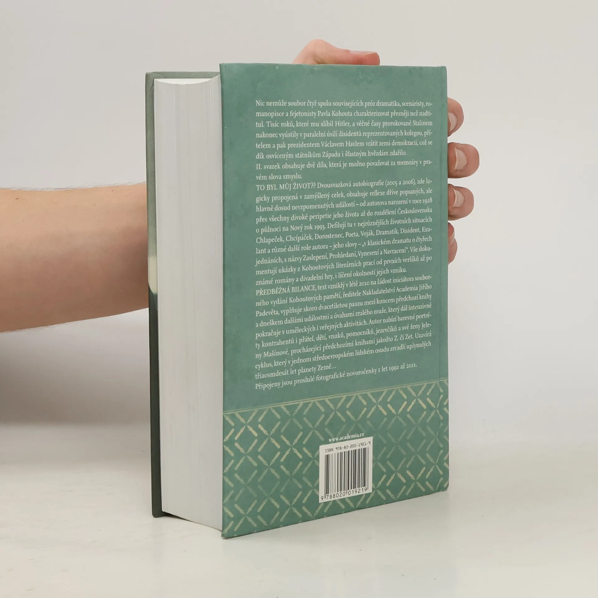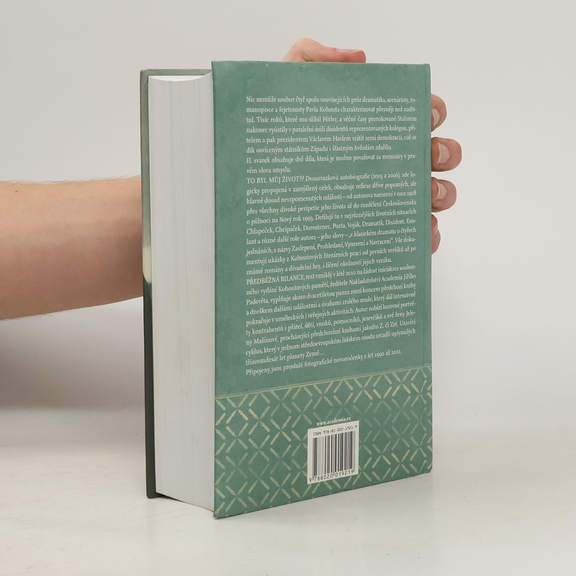 2. svazek Kohoutova autobiografického cyklu obsahuje následující díla, které lze považovat za memoáry v pravém slova smyslu: TO BYL MŮJ ŽIVOT?? Dvousvazková autobiografie (2005 a 2006), zde logicky propojená v zamýšlený celek, obsahuje reflexe dříve popsaných, ale hlavně dosud nevzpomenutýchudálostí - od autorova narození v roce 1928 přes všechy divoké peripetie jeho života až do rozdělení Československa o půlnoci na Nový rok 1993. defilují tu v nejrůznějších životních situacích Clapeček, Chcípáček, Dorostenec, Poeta, Voják, Dramatik, Disident, Exulant a různé další role autora - jeho slovy - "v klasickém dramatu o čtyřech jednáních, s názvy Zaslepení, Prohledaní, Vynesení a Navracení". Vše dokumentují ukázky z Kohoutových prací od prvních veršíků až po známé romány a divadelní hry, i líčení okolností jejich vzniku. PŘEDBĚŽNÁ BILANCE, text vzniklý v létě 2010 na žádost iniciátora souborného vydání Kohoutových pamětí, ředitele Nakladatelství Academia Jiřího Padevěta, vyplňuje skoro dvacetiletou pauzu mezi koncem předchozí knihy a dneškem dalšími událostmi a úvahami zralého muže, který dál intenzivně pokračuje v uměleckých i veřejných aktivitách. Autor nabízí barevné portréty kontrahentů i přátel, dětí, vnuků, pomocníků, jezevčíků a své ženy Jeleny Mašínové, procházející předchozími knihami jakožto Z. či Zet. Uzavírá cyklus, který v jednom středoevropském lidském osudu zrcadlí uplynulých třiaosmdesát let planety Země..