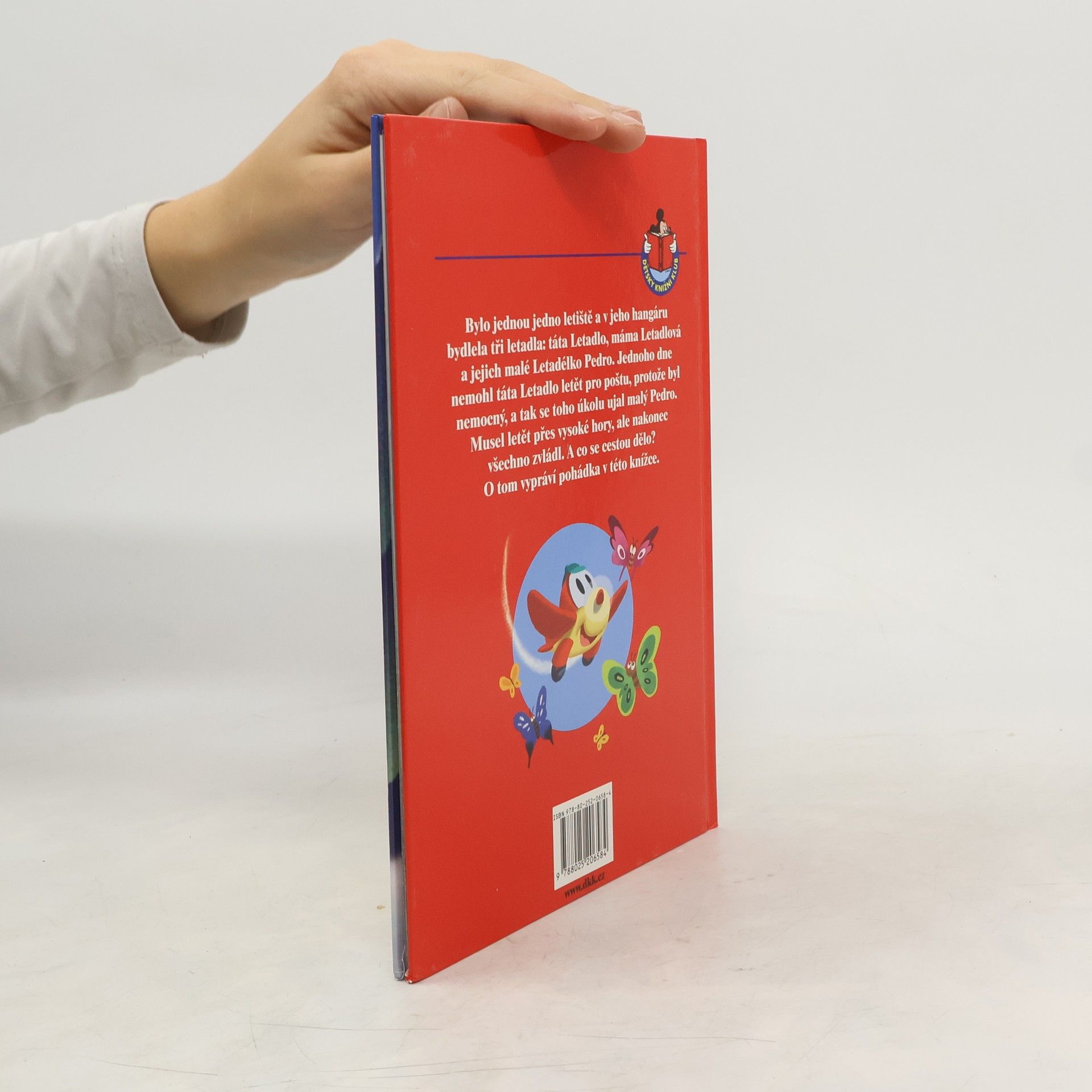 Bylo jednou jedno letiště a v jeho hangáru bydlela tři letadla: táta Letadlo, máma Letadlová a jejich malé Letadélko Pedro. Jednoho dne nemohl táta Letadlo letět pro poštu, protože byl nemocný, a tak se toho úkolu ujal malý Pedro. Musel letět přes vysoké hory, ale nakonec všechno zvládl. A co se cestou dělo? O tom vypráví pohádka v této knížce.