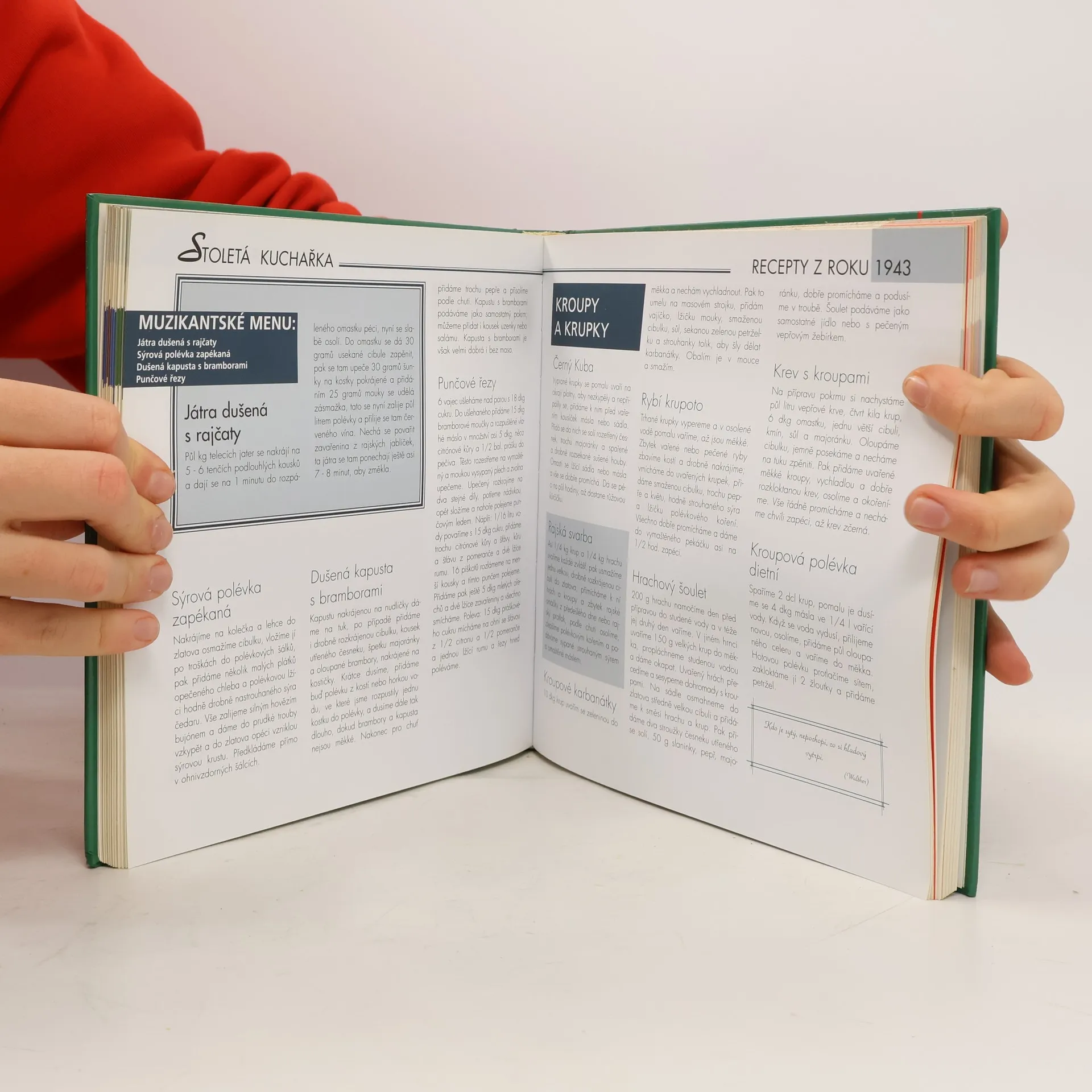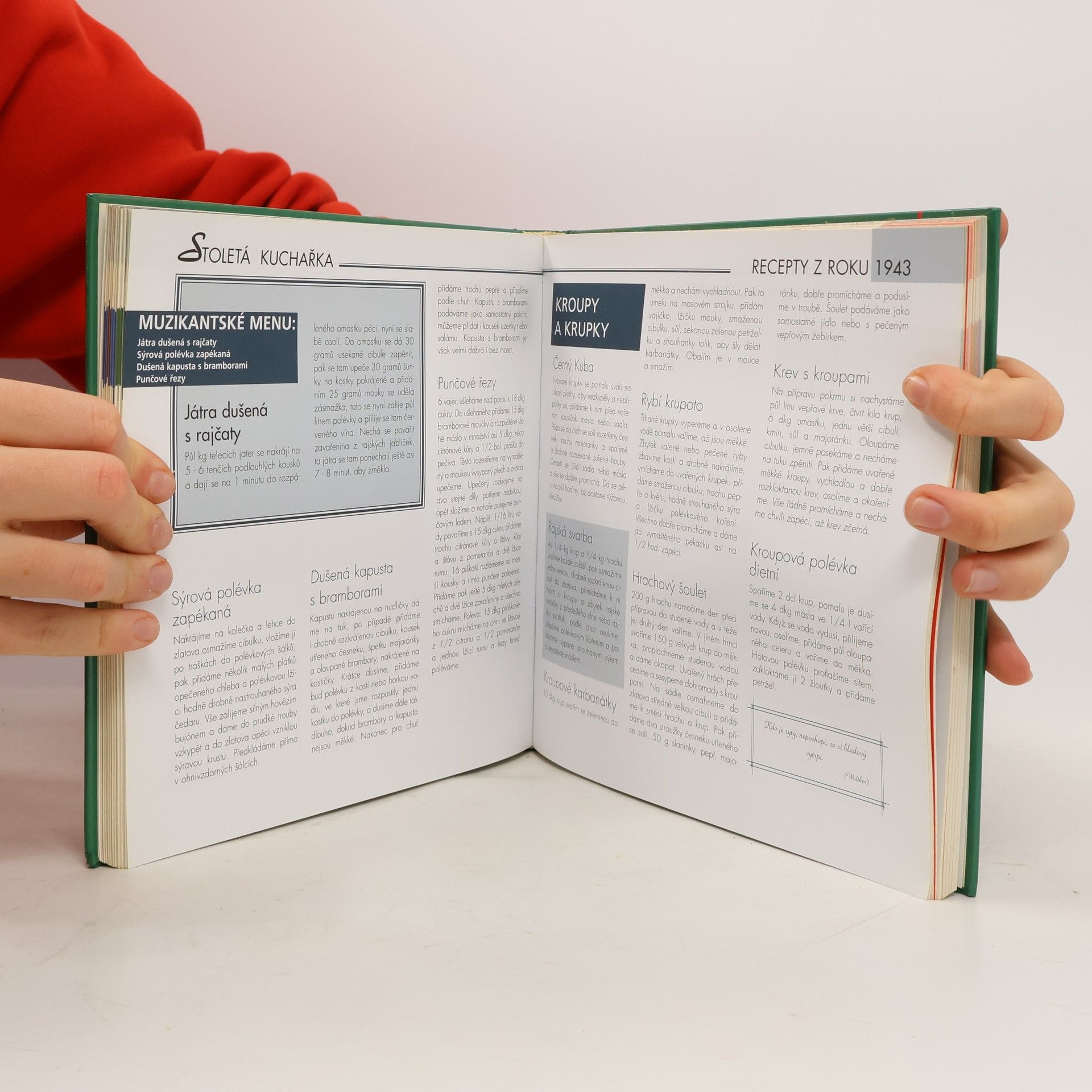 Máte rádi historii a ještě k tomu máte v oblibě dobrá a zajímavá jídla. Tato unikátní publikace spojuje obojí a jako dezert vám servíruje citáty slavných osobností. Čeká na vás kolem tisíce nejzajímavějších receptů minulého století. *Kniha je navíc rozdělena do několika přehledných časových etap a doplněna nejdůležitějšími historickými udáji a nejzajímavějšími událostmi té doby.