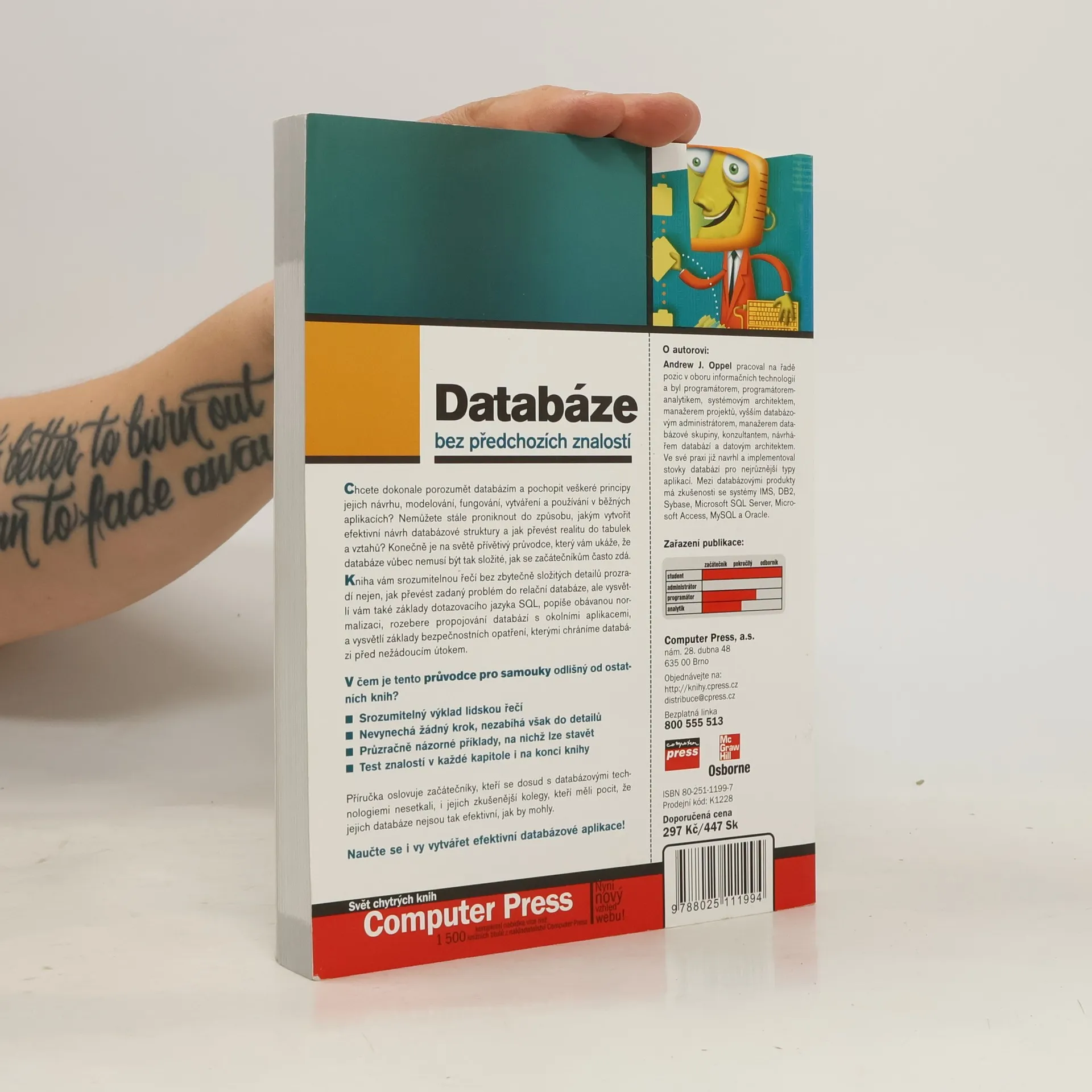 Chcete dokonale porozumět databázím a pochopit veškeré principy jejich návrhu, modelování, fungování, vytváření a používání v běžných aplikacích? Nemůžete stále proniknout do způsobu, jakým vytvořit efektivní návrh databázové struktury a jak převést realitu do tabulek a vztahů? Konečně je na světě přívětivý průvodce, který vám ukáže, že databáze vůbec nemusí být tak složité, jak se začátečníkům často zdá. Kniha vám srozumitelnou řečí bez zbytečně složitých detailů prozradí nejen, jak převést zadaný problém do relační databáze, ale vysvětlí vám také základy dotazovacího jazyka SQL, popíše obávanou normalizaci, rozebere propojování databází s okolními aplikacemi, a vysvětlí základy bezpečnostních opatření, kterými chráníme databázi před nežádoucím útokem.