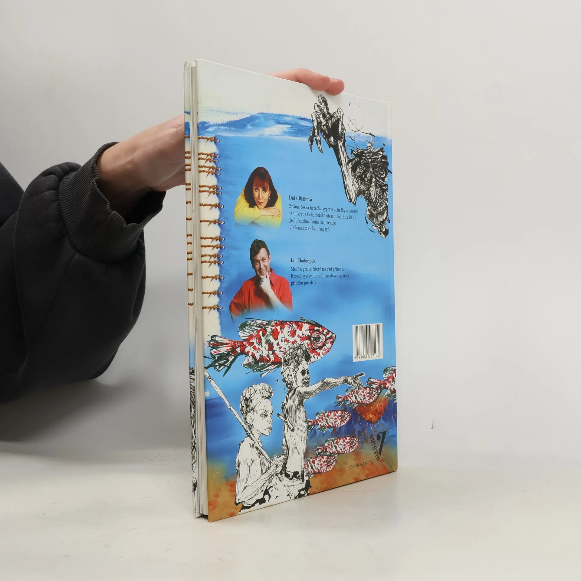 Známá česká herečka Dáša Bláhová vypráví pohádky a pověsti z tichomořské oblasti, kde žila 18 let. Kouzelné příběhy z jižního cípu Tichého oceánu, někdy vlídné, plné snů, tužeb a bláznivých nápadů, jindy kruté, takové, jaký byl život na ostrůvcích obývaných lidožrouty. Kniha naší přední herečky, která strávila v tomto koutě světa téměř dvě desetiletí, doplněná úchvatnými ilustracemi, plnými poezie i napětí vynikajícího českého výtvarníka Jana Chaloupka. Kniha je vytištěna na křídovém papíře, 30,5 x 21,5 cm. 1. vydání.