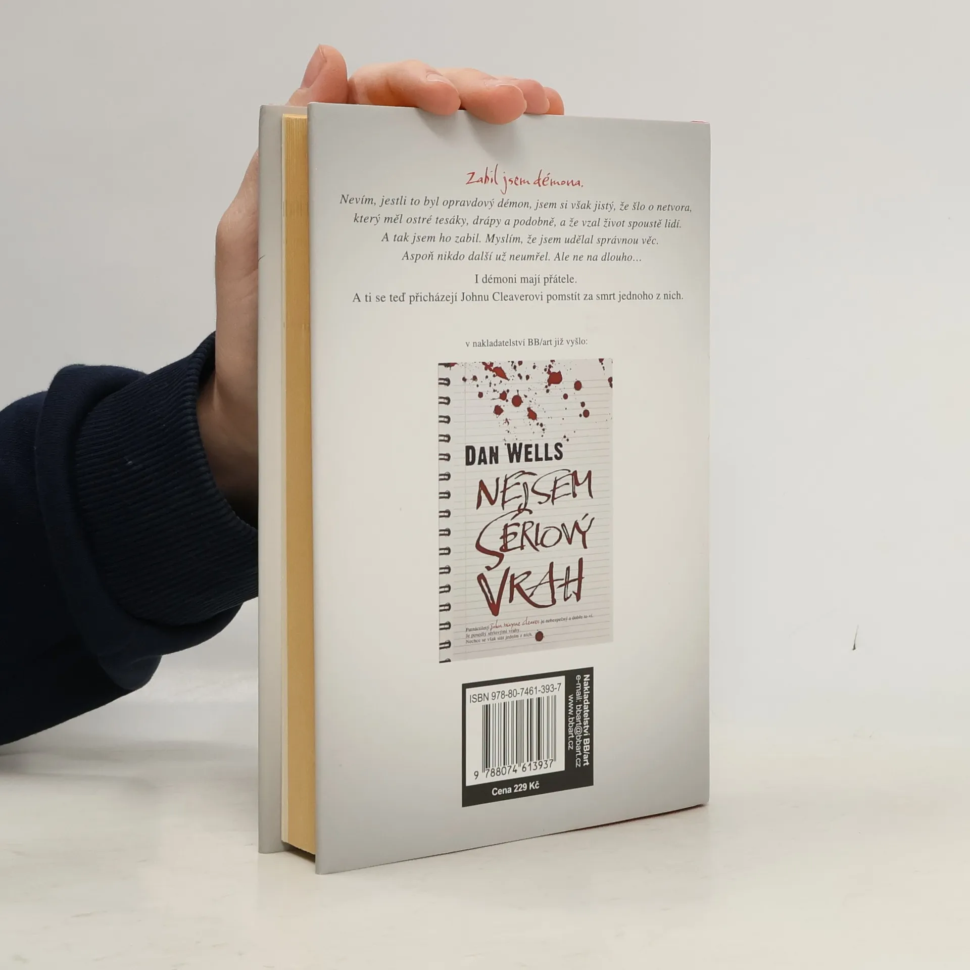 Zabil jsem démona. Nevím, jestli to byl opravdový démon, jsem si však jistý, že šlo o netvora, který měl ostré tesáky, drápy a podobně, a že vzal život spoustě lidí. A tak jsem ho zabil. Myslím, že jsem udělal správnou věc. Aspoň už nikdo další neumřel. Ale ne na dlouho… V knize Nejsem sériový vrah John Wayne Cleaver zachránil své město před zabijákem daleko hrozivějším, než jsou sérioví vrazi, kterými je přímo posedlý. Ukáže se však, že sotva jeden démon zmizel, v Claytonu jej vystřídal druhý. Zanedlouho se objeví další oběti, jež může John balzamovat v márnici, a nová záhada, která čeká na vyřešení. Jenže John okusil smrt a temná stránka jeho osobnosti, kterou používal jako zbraň – a nazývá ji Monstrum –, ho teď může ovládnout. V Claytonu nikdo nebude v bezpečí, dokud John nepřemůže dva děsivé protivníky: neznámého démona, kterého musí zastavit, a svého vnitřního démona, před nímž nikdy neuteče. Druhá část trilogie Dana Wellse je ještě čtivější a napínavější než její první díl. Autor se vám předem omlouvá za noční můry.