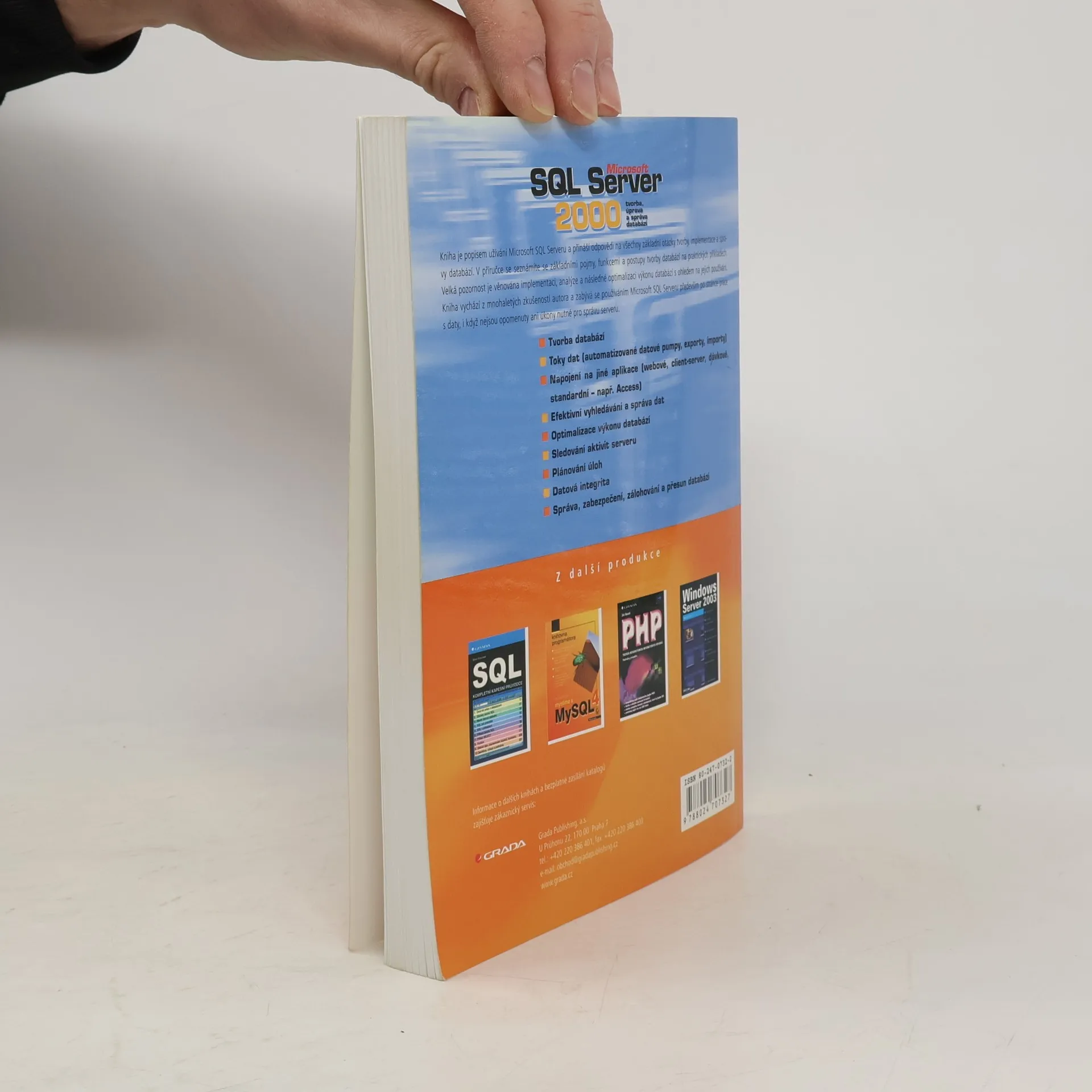 Kniha obsahuje kompletní popis užívání SQL Serveru 2000 a poskytne odpovědi na všechny typické otázky s ním spojené v oblastech implementace databází, správy a programátorského přístupu. Autor vám podrobně vysvětlí databázové pojmy, funkce a postupy při práci s SQL Serverem, které doplní o příklady použití od jednodušších ke složitějším.