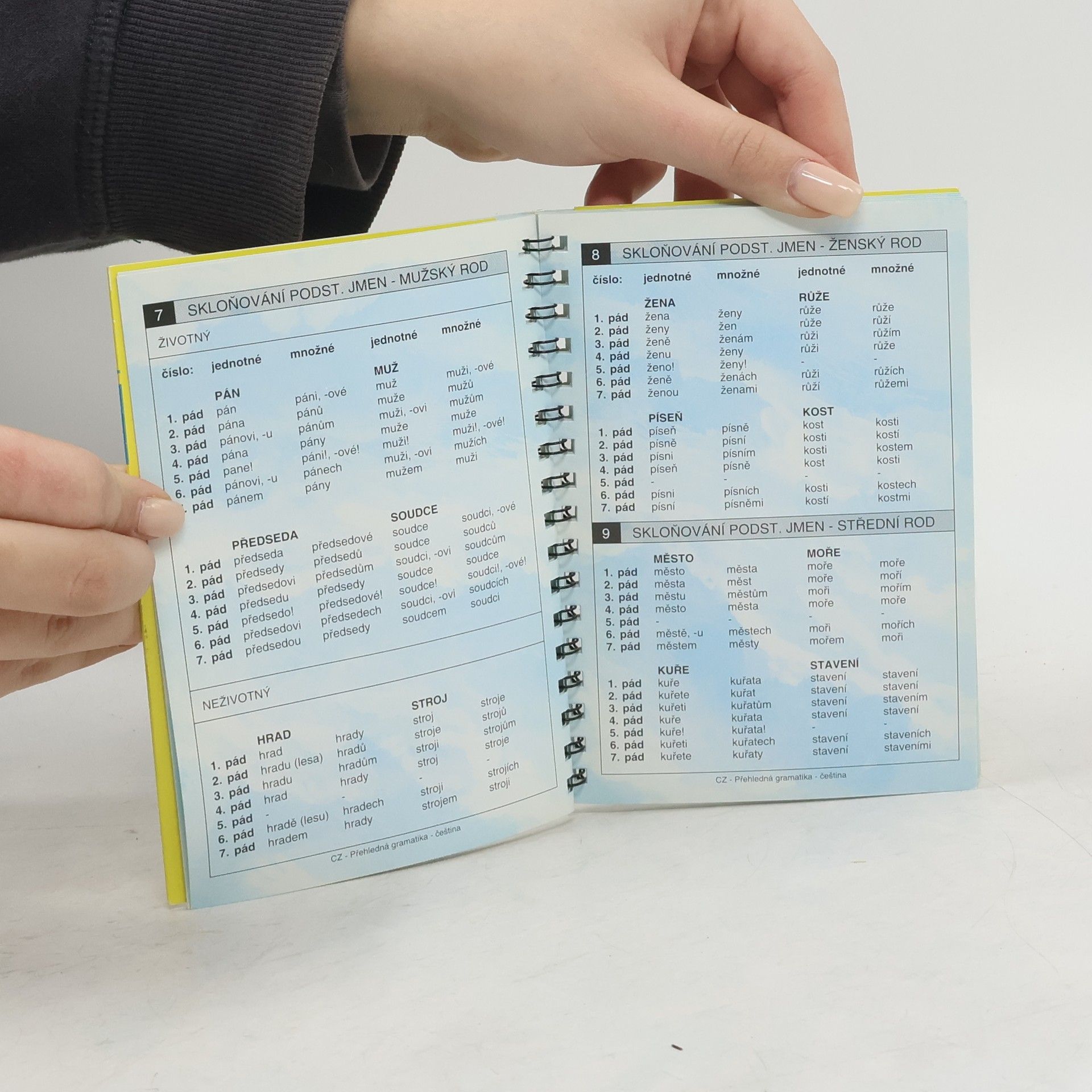 Tato publikace obsahuje 53 gramatických tabulek zpracovaných s důrazem na přehlednost a rychlý vyhledávací systém. Je zde uvedeno to nejdůležitější z české gramatiky - slovní druhy, větné členy, vyjmenovaná slova, pravopis atd.
