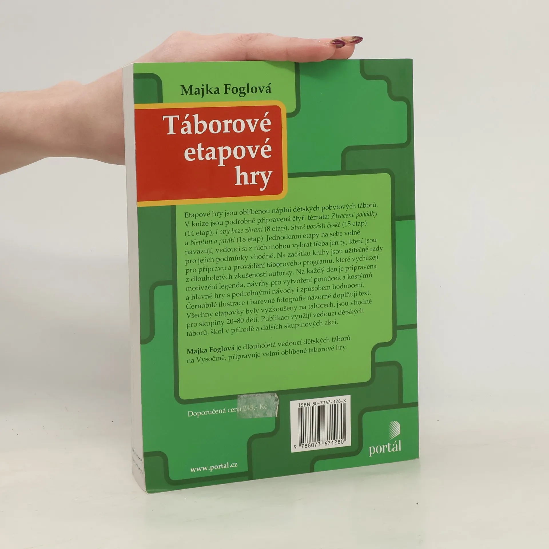 Etapové hry jsou oblíbenou náplní dětských pobytových táborů. V knize jsou podrobně připravená čtyři témata: Ztracené pohádky (14 etap), Lovy beze zbraní (8 etap), Staré pověsti české (15 etap) a Neptun a piráti (18 etap). Jednodenní etapy na sebe volně navazují, vedoucí si z nich mohou vybrat třeba jen ty, které jsou pro jejich podmínky vhodné. Na každý den je připravena motivační legenda, návrhy pro vytvoření pomůcek a kostýmů a hlavně hry s podrobnými návody i způsobem hodnocení. Černobílé ilustrace i barevné fotografie názorně doplňují text. Všechny etapovky byly vyzkoušeny na táborech, jsou vhodné pro skupiny 20–80 dětí. Na začátku knihy jsou uvedeny užitečné rady pro přípravu a provádění táborového programu, které vycházejí z dlouholetých zkušeností autorky. Publikaci využijí vedoucí dětských táborů, škol v přírodě a dalších skupinových akcí.