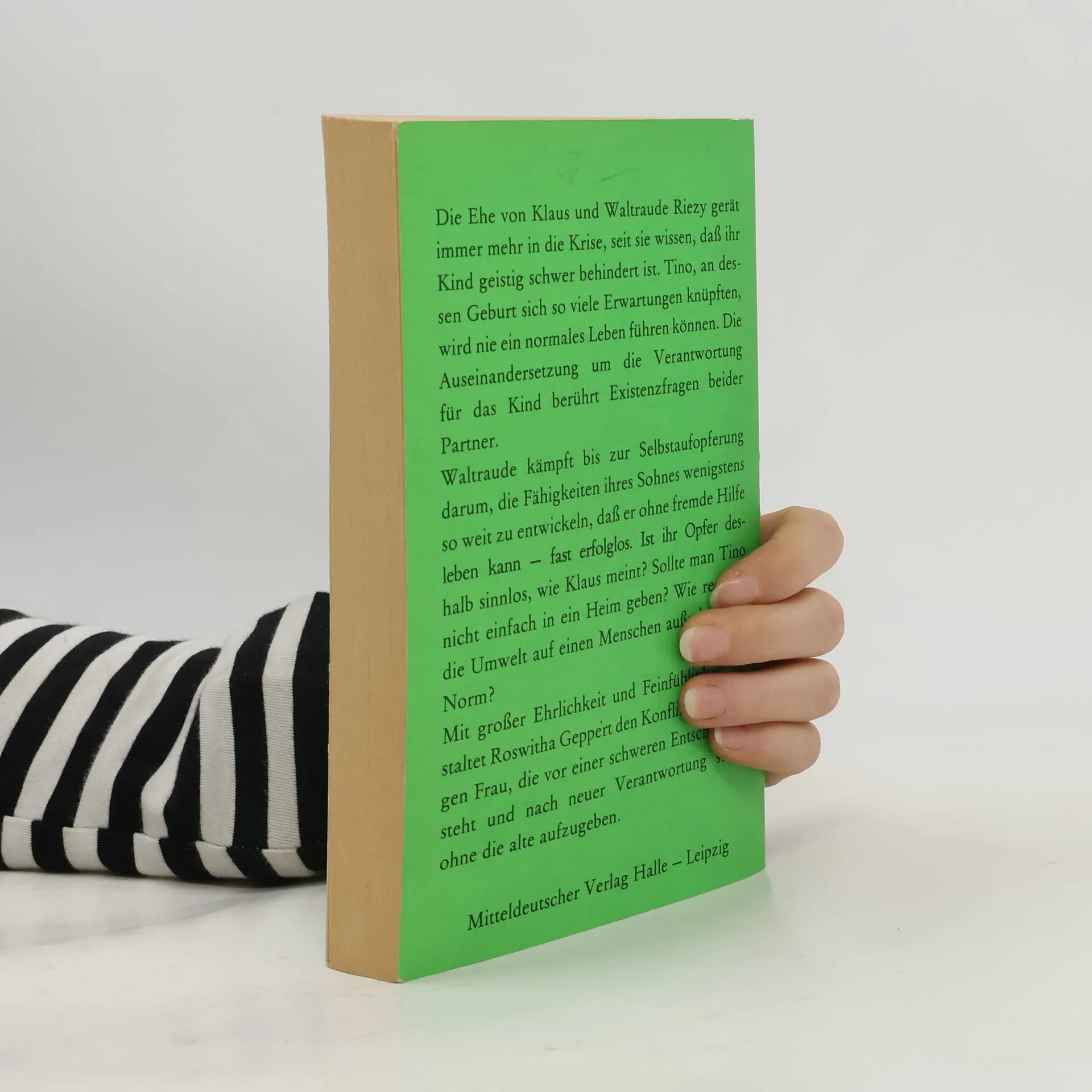 Als dieser auf persönlichen Erfahrungen basierende Roman 1978 erstmals erschien, brach er ein Tabu. Er schildert authentisch und zutiefst berührend das Schicksal eines Paares mit einem behinderten Kind. Der Kampf der Mutter um ein Mindestmaß an Unterstützung und Entwicklungschancen für ihren Sohn hat auch heute nichts von seiner Aktualität verloren. In der später veröffentlichten und dieser Ausgabe beigefügten Erzählung berichtet die Autorin Roswitha Geppert über das weitere Schicksal des Jungen.