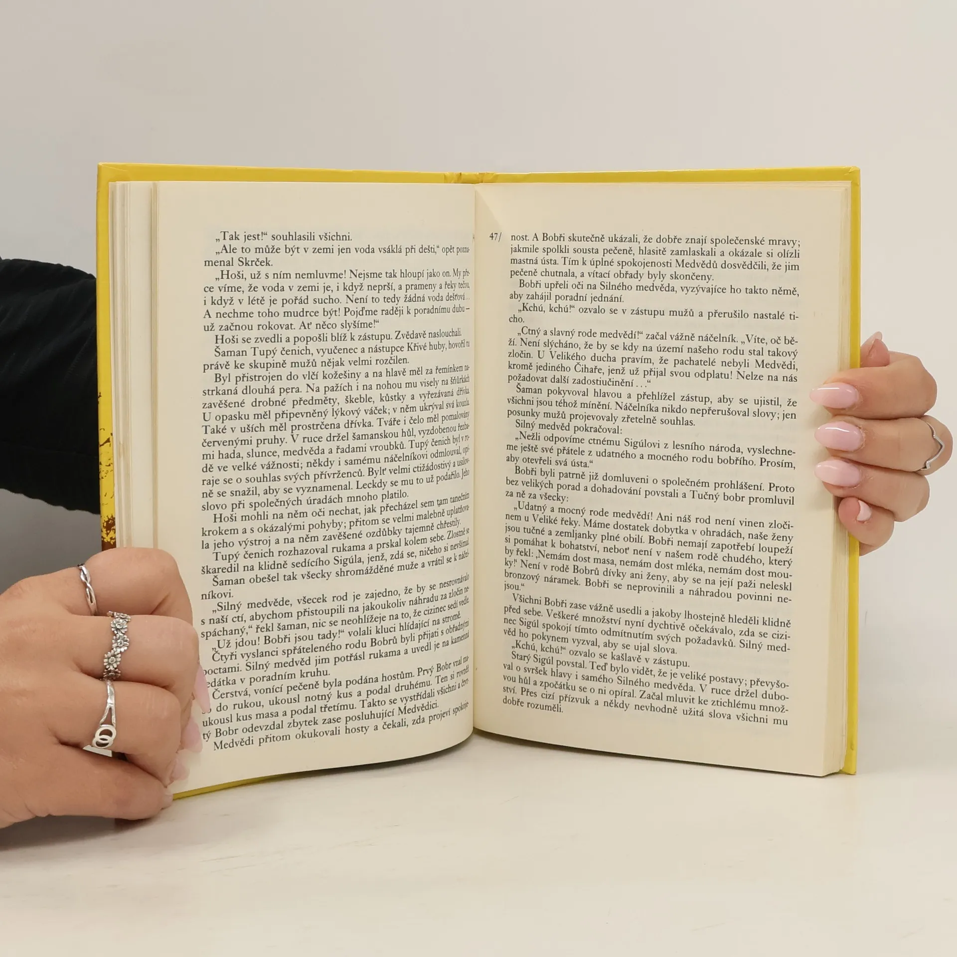 Kniha popisuje společnost lidí žijících na našem území v době bronzové. Hrdina příběhu, Skrček z rodu Medvědů, nevyniká silou a pro malou postavu je často terčem posměchu, je ale neobyčejně bystrý a statečný. Chytrost a odvaha mu pomohou očistit památku otce neprávem nařčeného ze zločinu, najít jeho vrahy a také Medvědům vrátit dobré jméno. Na cestách s vyslancem vzdáleného rodu prožije mnoho napínavých i nebezpečných situací, často jde o holý život. Ilustroval Zdeněk Burian.