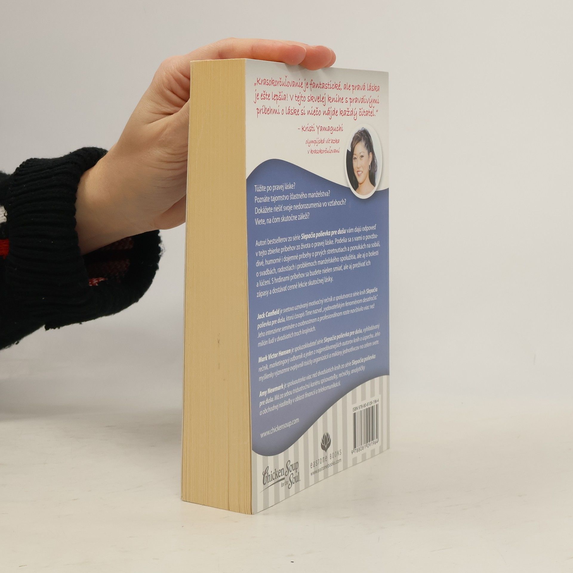 Túžite po pravej láske? Poznáte tajomstvo šťastného manželstva? Dokážete riešiť svoje nedorozumenia vo vzťahoch? Viete, na čom skutočne záleží? Autori bestsellerov zo série Slepačia polievka pre dušu vám dajú odpoveď v tejto zbierke príbehov zo života o pravej láske. Podelia sa s vami o povzbudivé, humorné i dojemné príbehy o prvých stretnutiach a ponukách na sobáš, o svadbách, radostiach i problémoch manželského spolužitia, ale aj o bolesti a lúčení. S hrdinami príbehov sa budete nielen smiať, ale aj prežívať ich zápasy a dostávať cenné lekcie skutočnej lásky.