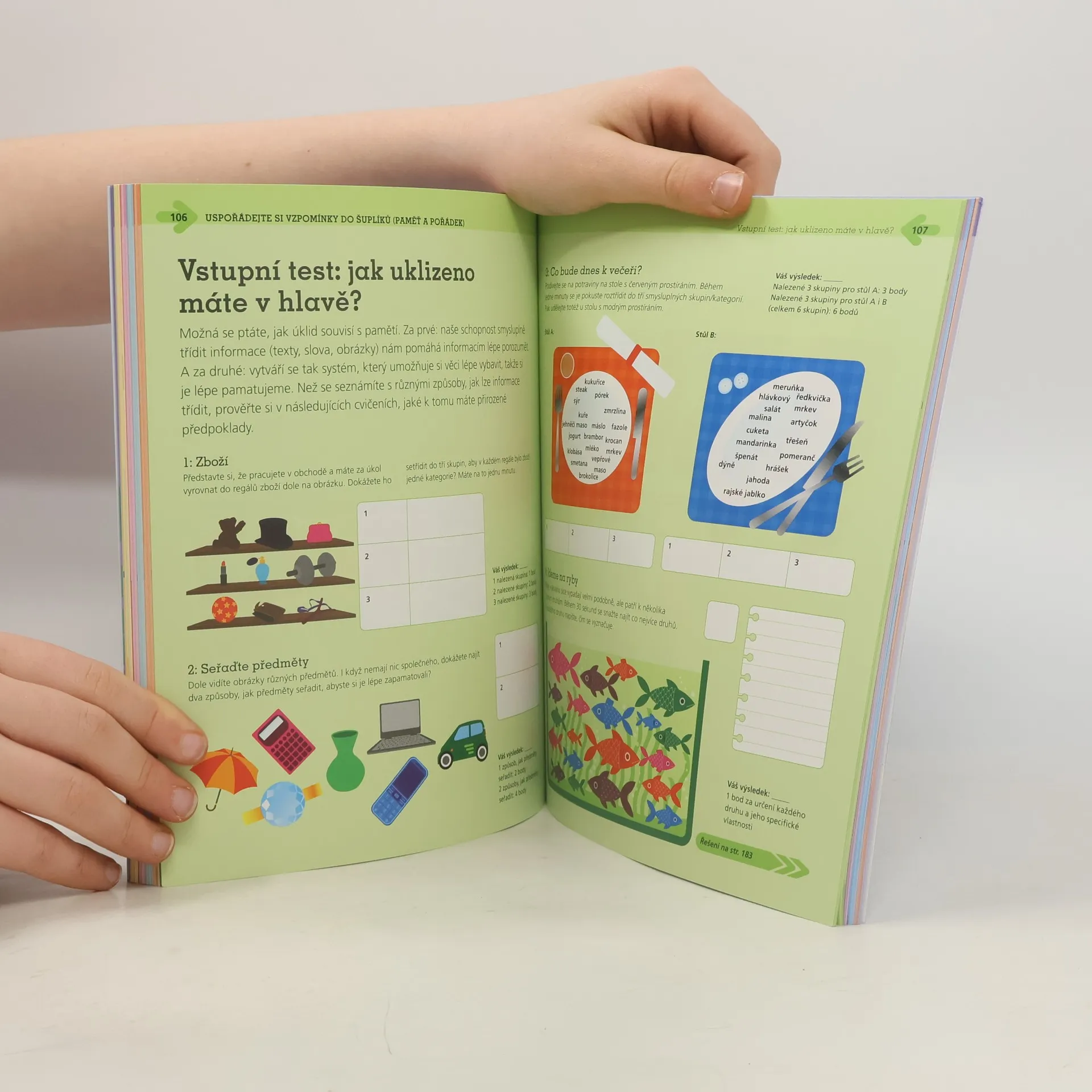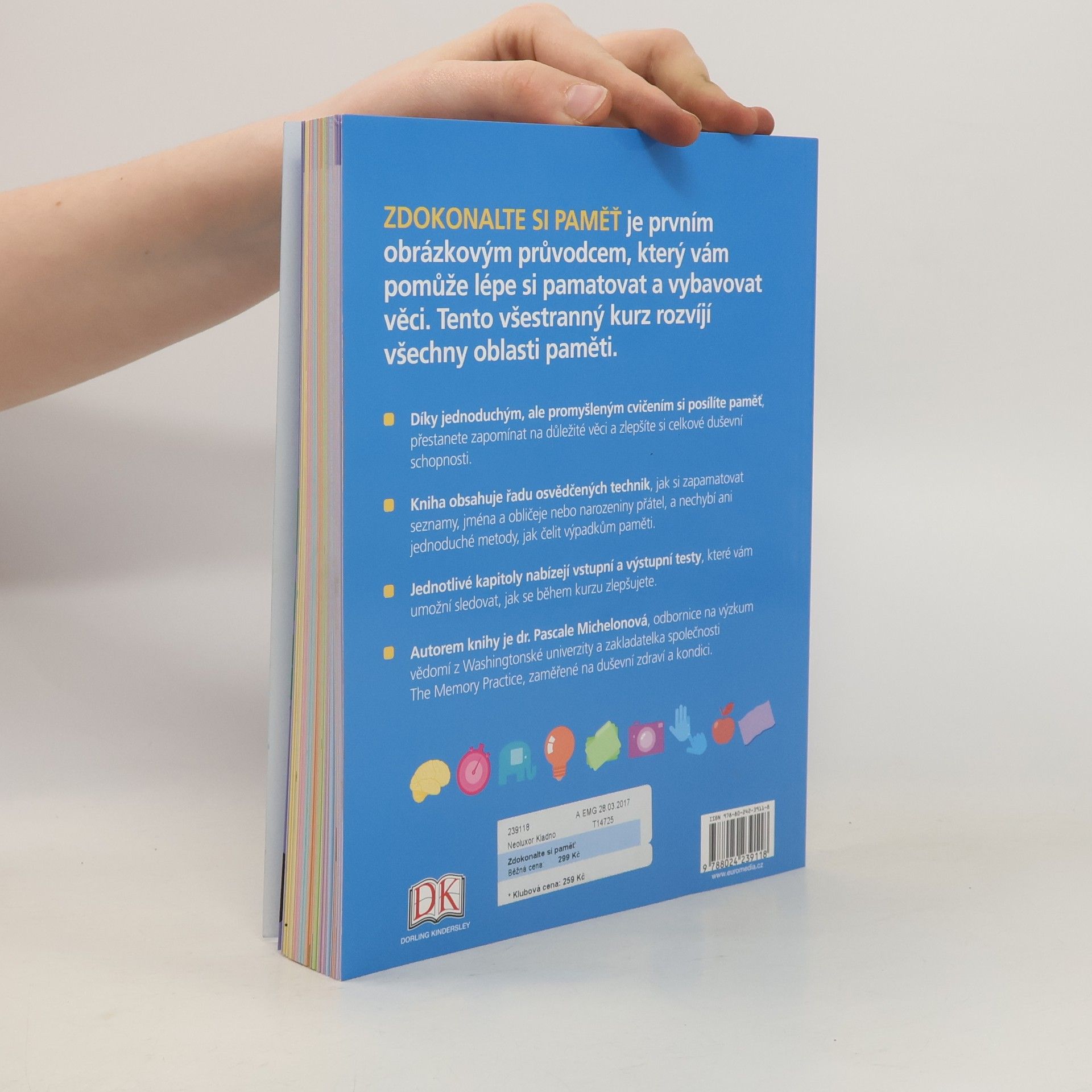 Více než 200 cvičení, tipů a technik, jak si zlepšit paměť. Knížka je prvním obrázkovým průvodcem, který vám pomůže lépe si pamatovat a vybavovat informace, přestat zapomínat na důležité věci a zlepšit celkové duševní schopnosti. Protože si pamatujeme lépe obrázky než slova, spočívá princip většiny technik na zlepšení paměti, které vám knížka představuje, v převedení informací do výstižných obrazových představ. Naučíte se například, jak si nejlépe zapamatovat seznamy, jména a obličeje nebo narozeniny přátel, a nechybí ani jednoduché metody, jak čelit výpadkům paměti.