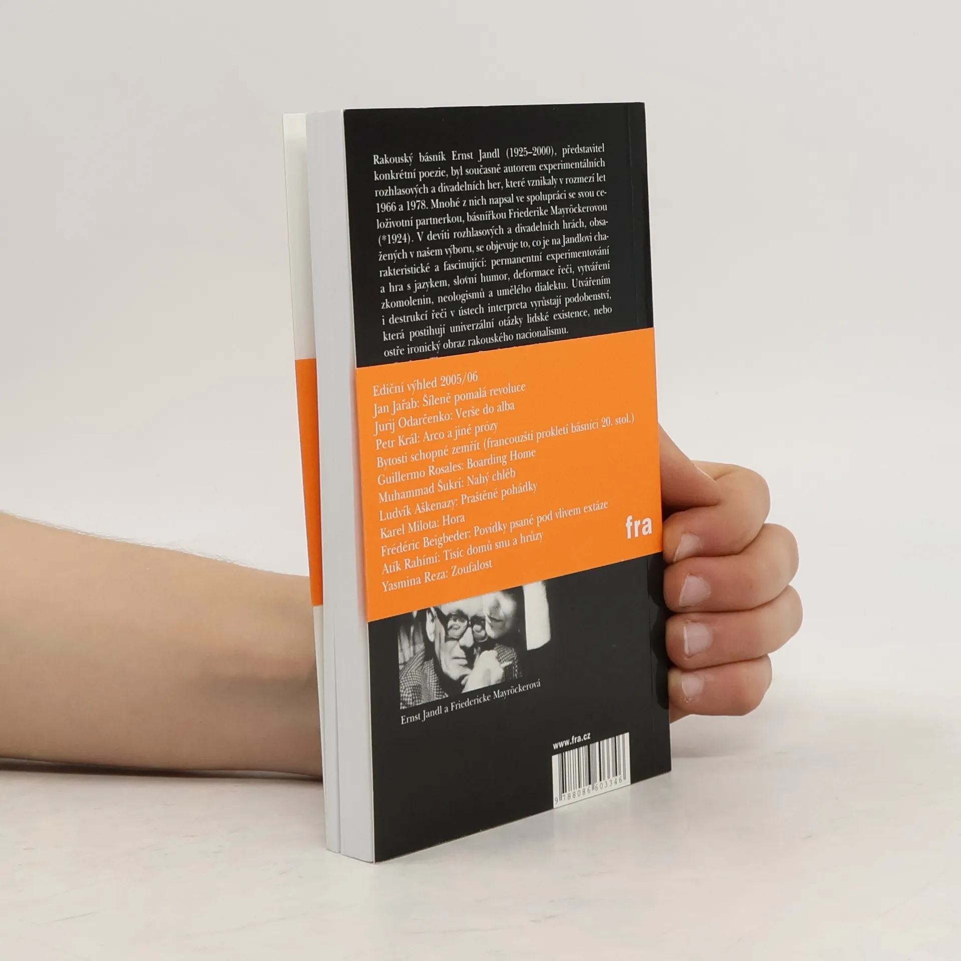 Výbor z dramatických textů rakouského básníka Ernsta Jandla (1925–2000), které napsal ve spolupráci se svou celoživotní partnerkou, básnířkou Friederike Mayröckerovou. V devíti rozhlasových a divadelních hrách se objevuje to, co je na Jandlovi charakteristické a fascinující: permanentní experimentování a hra s jazykem, slovní humor, deformace řeči, vytváření zkomolenin, neologismů a umělého dialektu. Utvářením i destrukcí řeči v ústech interpreta vyrůstají podobenství, která postihují univerzální otázky lidské existence, nebo ostře ironický obraz rakouského nacionalismu.