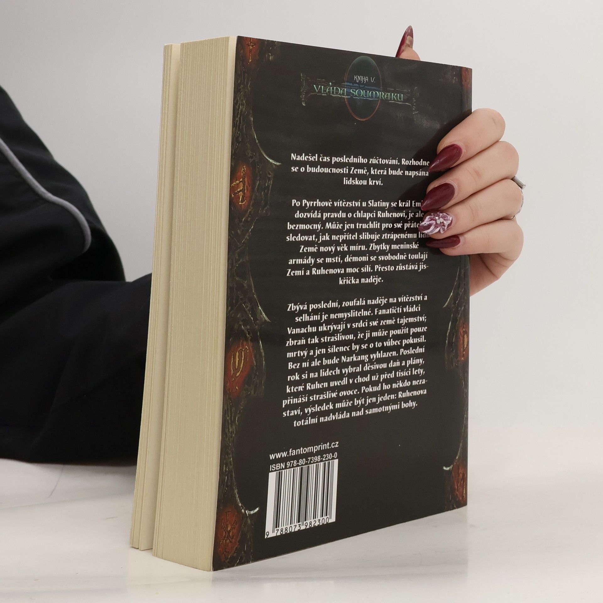 Nadešel čas posledního zúčtování. Rozhodnutí o budoucnosti Země bude sepsáno lidskou krví. Po Pyrrhově vítězství na Slatině se král Emin dozvídá pravdu o chlapci Ruhenovi. Je bezmocný a může jen truchlit pro své přátele a přihlížet, jak nepřítel slibuje nový věk míru ztrápenému lidu Země. Přestože se ale zbývající meninské jednotky mstí, démoni se svobodně procházejí Zemí a Ruhenova moc sílí, stále zůstává jiskřička naděje. Zbývá jedna poslední, zoufalá možnost, jak zvítězit, přičemž selhání je nemyslitelné. Fanatičtí vládci Vanachu ukrývají v srdci svého národa tajemství – zbraň tak strašlivou, že ji může použít jen mrtvý a jen šílenec by se o to pokusil; bez ní ale bude Narkang srovnán se zemí. Poslední rok si vybral děsivou daň a Ruhenovy plány, které zahájil už před tisíci lety, mají přinést strašlivé ovoce. Pokud ho někdo nezastaví, mohou mít jediný výsledek: naprostou dominanci nad samotnými bohy.