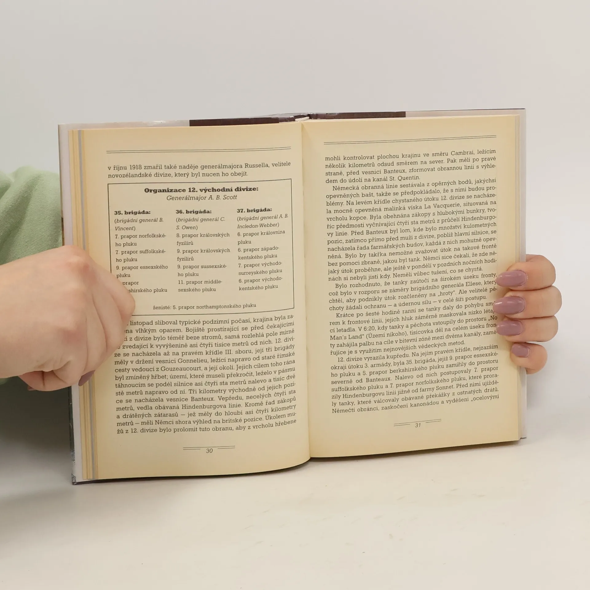 Autoři Jack Horsfall a Nigel Cave v knize „Cambrai – Pravý hák: Hindenburgova linie“ z cyklu Bojiště Evropy popisují boje u francouzského města Cambrai na konci roku 1917 a v září roku 1918. Jsou zde dopodrobna vylíčeny události na pravém křídle v průběhu britské listopadové ofenzivy a následné německé protiofenzivy, tvrdé boje novozélandské divize o necelý rok později, nechybí ani příběhy o hrůzách z roku 1914, kdy oblast obsadili postupující Němci. V textu se výstižně prolínají popisy masových operací s aktivitami malých skupin ba i jedinců, kteří se velkou měrou zasadili o výsledek bitvy. A v neposlední řadě je zde zhodnoceno první masové nasazení nové zbraně – tanků, operujících v průběhu ofenzivy jako předvoj pěchoty. Kniha je hustě doplněna dobovou fotodokumentací a mapami jednotlivých bojišť jakož i celéoblasti. V závěru nechybí podrobný průvodce bojištěm, rozčleněný do pěti tras, některé úseky lze absolvovat pěšky, jiné automobilem. Uvedeny jsou i možnosti ubytování.