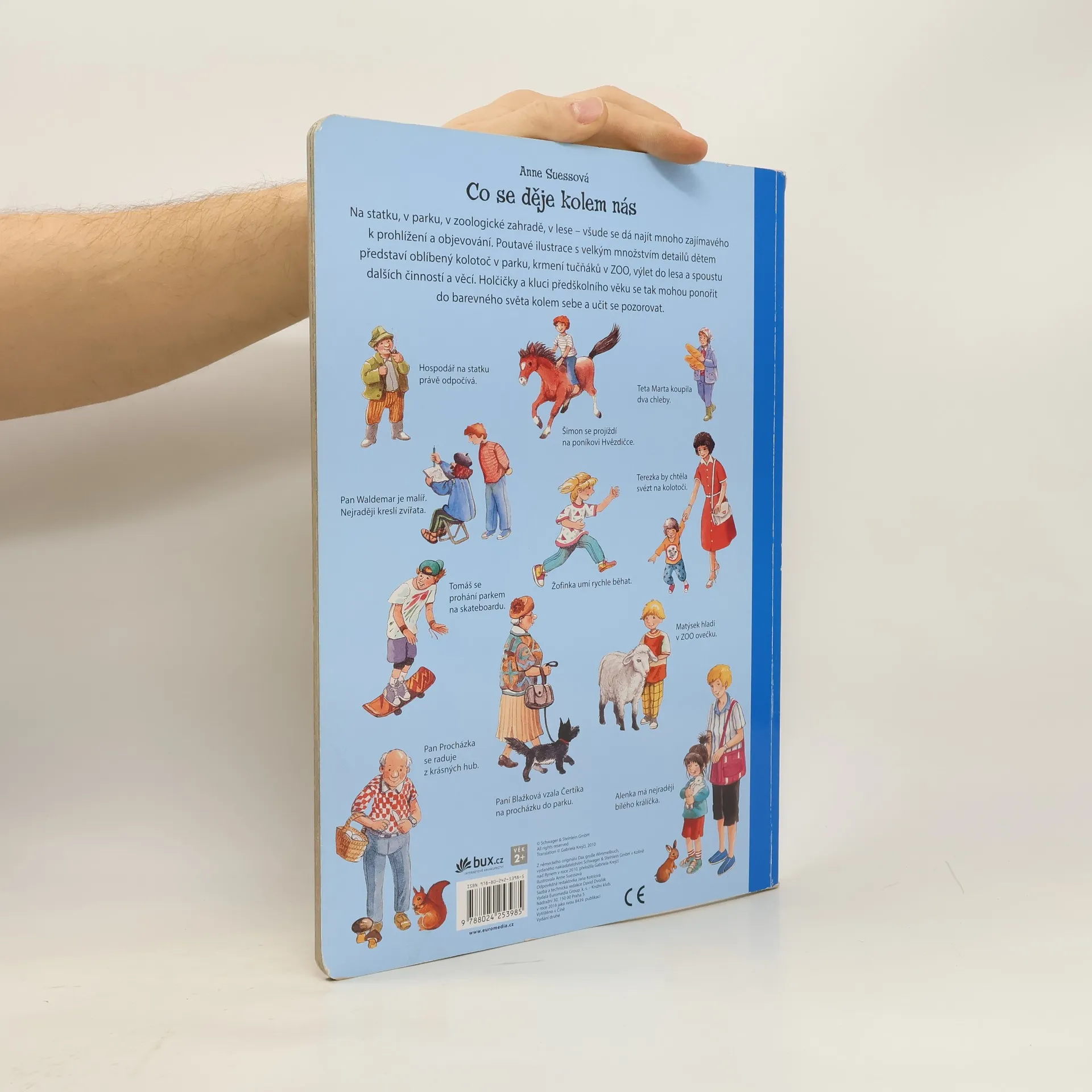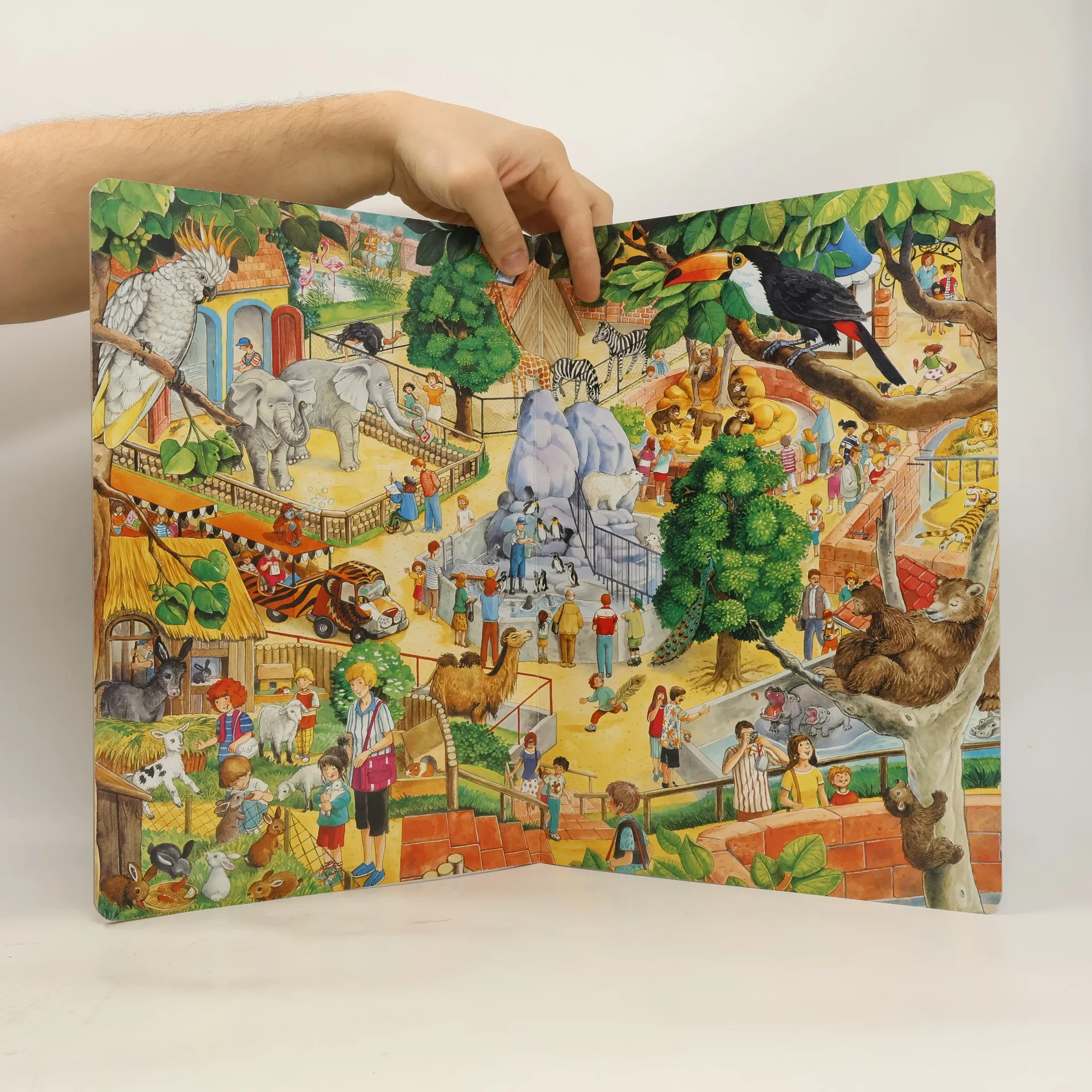 Na statku, v parku, v zoologické zahradě, v lese – všude se dá najít mnoho zajímavého k prohlížení a objevování. Poutavé ilustrace s velkým množstvím detailů dětem představí oblíbený kolotoč v parku, krmení tučňáků v ZOO, výlet do lesa a spoustu dalších činností a věcí. Holčičky a kluci předškolního věku se tak mohou ponořit do barevného světa kolem sebe a učit se pozorovat.