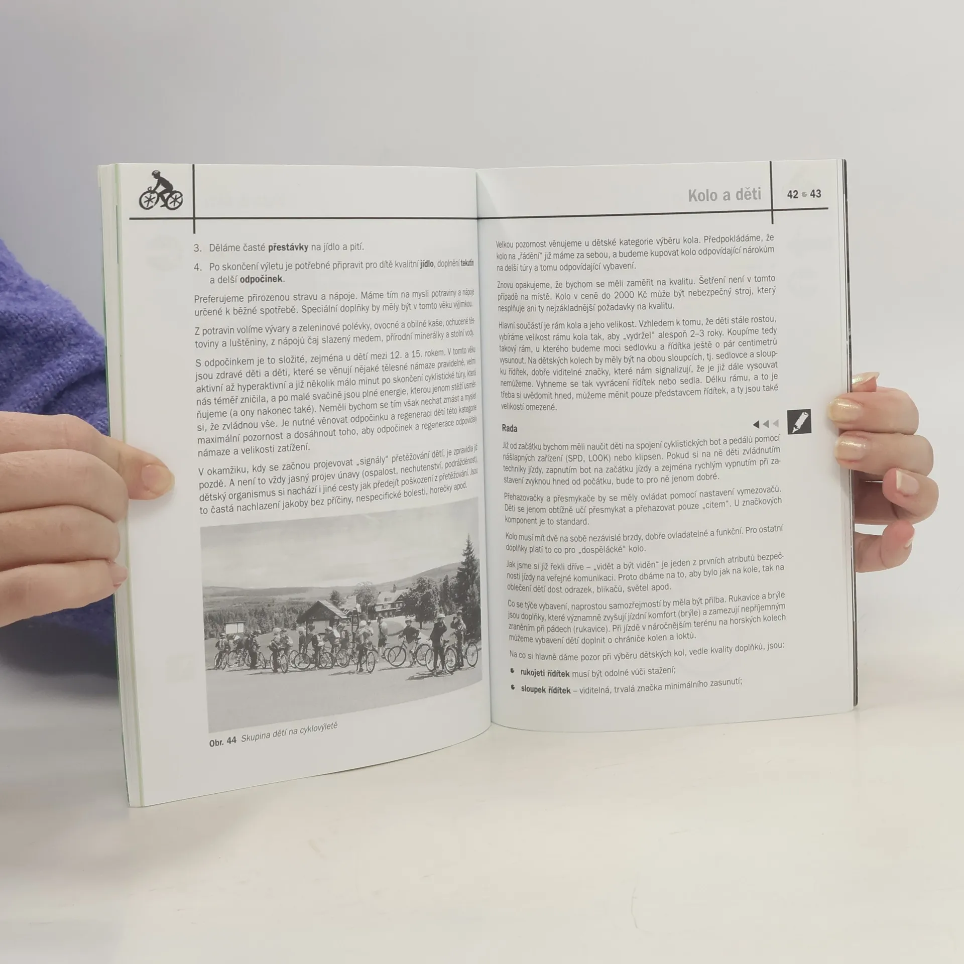 Publikace se zaměřuje na cyklistiku jako atraktivní tělesnou aktivitu a provádí čtenáře od výběru kola až po náročnější cyklistické výzvy. Obsahuje informace o výhodách jízdy na kole a podrobnosti o různých typech bicyklů, jako jsou silniční, horská a trekkingová kola, včetně jejich konstrukce a komponentů. Dále se věnuje důležitým doplňkům, jako jsou helmy, chrániče, oblečení a další vybavení nezbytné pro bezpečnou jízdu. Kniha také pokrývá aspekty jízdy s dětmi, včetně sedaček a závěsných vozíků, a techniky jízdy, jako je správný posed a šlapání. Důraz je kladen na přípravu na delší cesty, jízdu ve skupině a přepravu kol. Nechybí ani rady ohledně stravování a pitného režimu, regenerace a hygieny. Čtenáři se dozvědí o základní údržbě jízdního kola, závodech a aktivitách pro všechny úrovně cyklistů. Publikace obsahuje také slovníček pojmů a doporučenou literaturu pro další studium. Tato kniha je ideálním průvodcem pro každého, kdo se chce věnovat cyklistice, ať už začátečníka nebo pokročilého cyklistu.