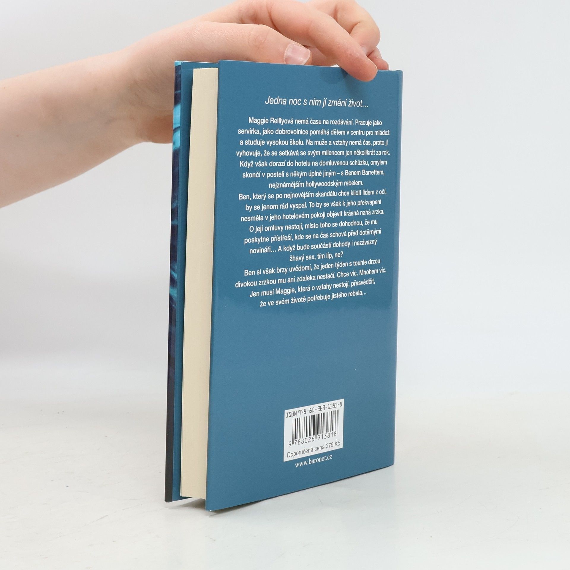 Jedna noc s ním jí změní život… Maggie Reillyová nemá času na rozdávání. Pracuje jako servírka, jako dobrovolnice pomáhá dětem v centru pro mládež a studuje vysokou školu. Na muže a vztahy nemá čas, proto jí vyhovuje, že se setkává se svým milencem jen několikrát za rok. Když však dorazí do hotelu na domluvenou schůzku, omylem skončí v posteli s někým úplně jiným – s Benem Barrettem, nejznámějším hollywoodským rebelem. Ben, který se po nejnovějším skandálu chce klidit lidem z očí, by se jenom rád vyspal. To by se však k jeho překvapení nesměla v jeho hotelovém pokoji objevit krásná nahá zrzka. O její omluvy nestojí, místo toho se domluví, že mu poskytne přístřeší, kde se na čas schová před dotěrnými novináři… a když bude součástí dohody i nezávazný žhavý sex, tím líp, ne? Ben si však brzy uvědomí, že jeden týden s touhle drzou divokou zrzkou mu ani zdaleka nestačí. Chce víc. Mnohem víc. Jen musí Maggie, která o vztahy nestojí, přesvědčit, že ve svém životě potřebuje jistého rebela…