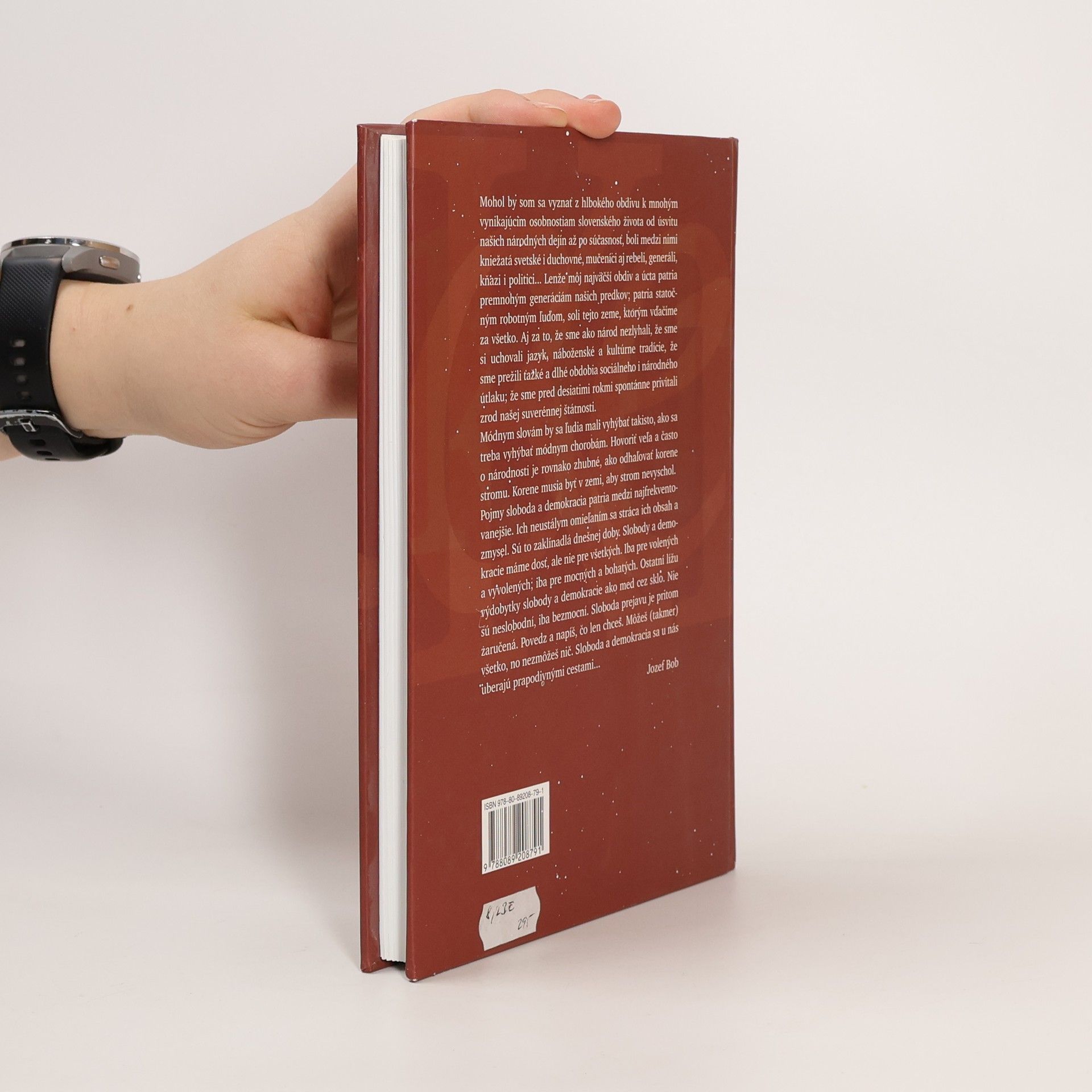 Mohol by som sa vyznať z hlbokého obdivu k mnohým vynikajúcim osobnostiam slovenského života od úsvitu našich národných dejín až po súčasnosť, boli medzi nimi kniežatá svetské i duchovné, mučeníci aj rebeli, generáli, kňazi i politici... Lenže môj najväčší obdiv a úcta patria premnohým generáciám našich predkov; patria statočným robotným ľuďom, soli tejto zeme, ktorým vďačíme za všetko...