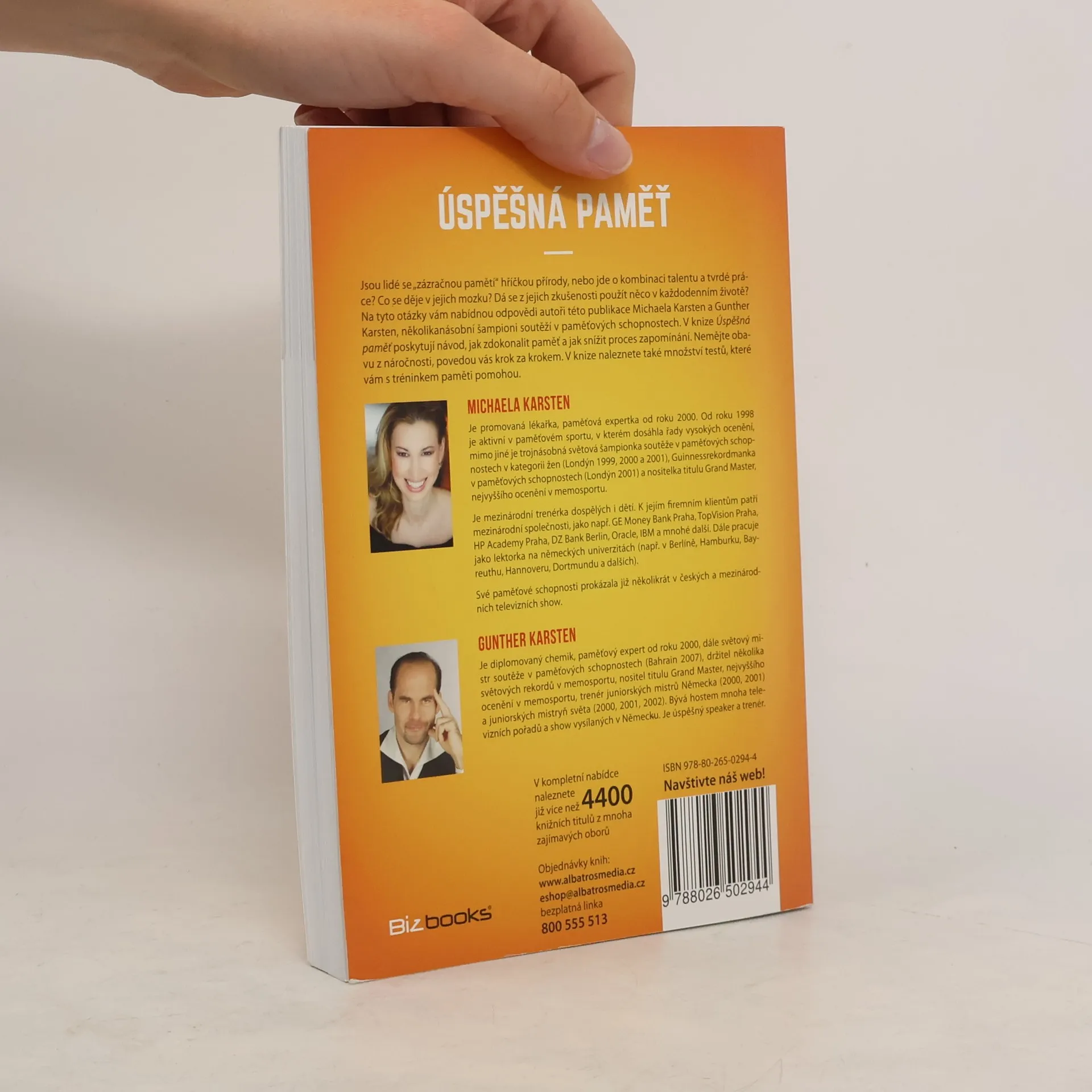 Trénujte svůj mozek se světovými šampiony Jsou lidé se „zázračnou pamětí“ hříčkou přírody, nebo jde o kombinaci talentu a tvrdé práce? Co se děje v jejich mozku? Dá se z jejich zkušenosti užít něco v každodenním životě? A kdo by se nebál oslabování paměti ve stáří. Na tyto otázky vám mohou odpovědět lidé, kteří mají s problematikou zkušenosti – například autoři této knihy Michaela a Gunther Karsten, několikanásobní šampioni soutěží v paměťových schopnostech. V knize Úspěšná paměť poskytují návod, jak na sobě pracovat v mládí i jak se bránit stárnutí. Nemějte obavu z náročnosti, povedou vás krok za krokem.