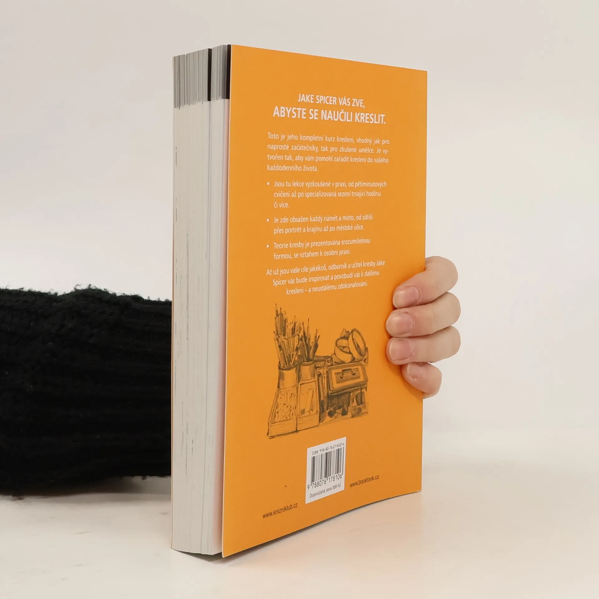 Skicujte a kreslete cokoli, kdekoli. Jake Spicer vás zve, abyste se naučili kreslit! Tento kompletní kurz kreslení je vhodný jak pro naprosté začátečníky, tak pro zkušené umělce. Je vytvořen tak, aby vám pomohl zařadit kreslení do každodenního života. V knize najdete lekce vyzkoušené v praxi, od pětiminutových cvičení až po specializovaná sezení, trvající hodinu či více. Vyzkoušíte si mnoho námětů: od zátiší přes portrét, krajinu až po městské ulice. A to vše srozumitelnou formou, se vztahem k osobní praxi. Ať už jsou vaše cíle jakékoli, odborník a učitel kresby Jake Spicer vás bude inspirovat a povzbudí vás k dalšímu kreslení – a k neustálému zdokonalování.