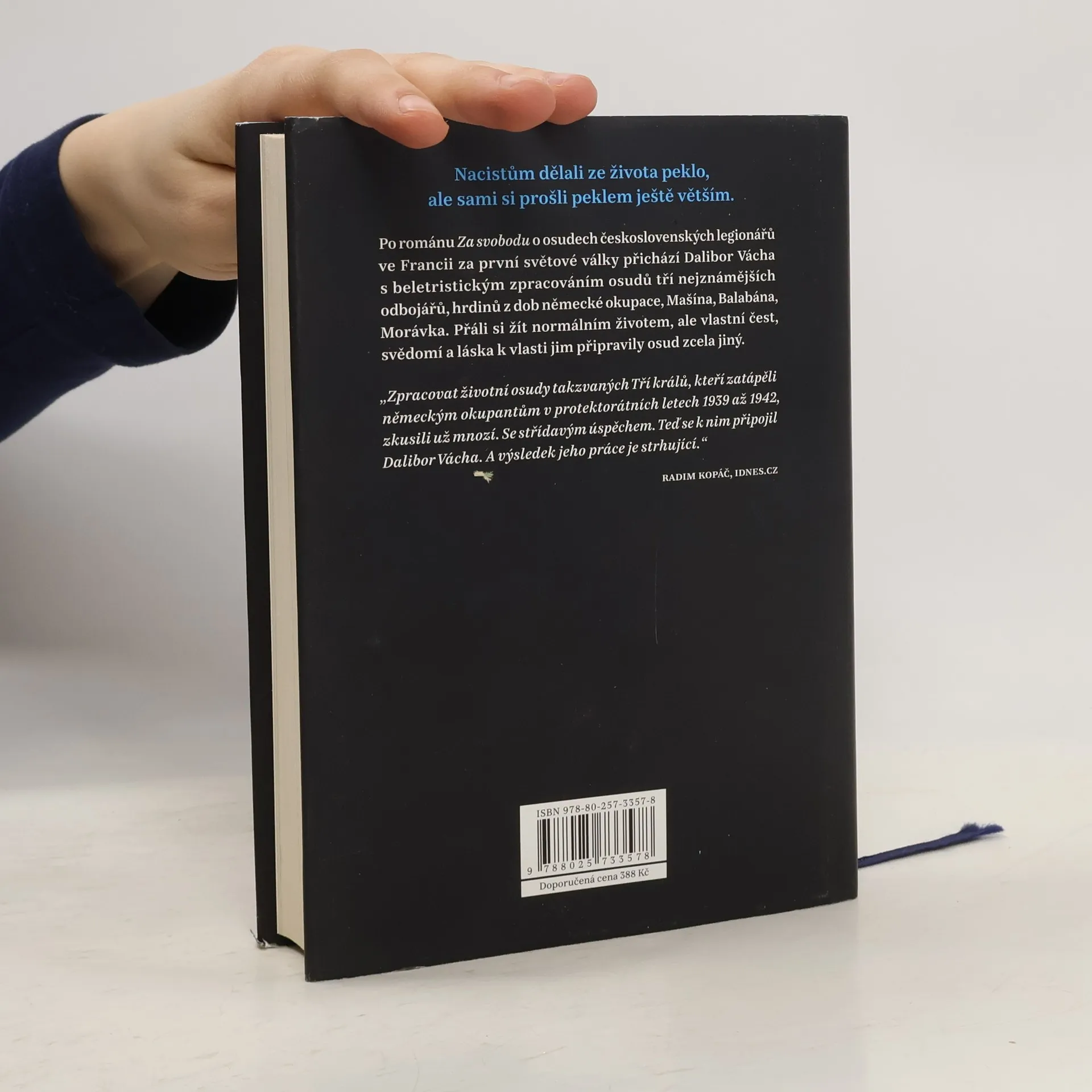 M+B+M. Josef Mašín, Josef Balabán, Václav Morávek. Tři králové z doby nacistické okupace. Nezpochybnitelní hrdinové, kteří neváhali riskovat a položit životy za osvobození Československa. A přesto to byli i normální lidé toužící po obyčejných věcech jako láska, rodina nebo klidný večer beze strachu, kdo zaklepe na dveře konspiračního bytu… Román Dalibora Váchy M+B+M vypráví o odbojové činnosti těchto tří velikých postav československé historie od roku 1939 až do jejich úplného konce. Barvitě popisuje všechny jejich dobrodružné a nebezpečné eskapády i postupně narůstající únavu ze života po konspiračních bytech, každodenně na hraně života a smrti, kdy nepřítel může stát za každým rohem a zrádcem bývá i blízký přítel. Vše pak dokresluje ponurá, klaustrofobní atmosféra okupované Prahy plná gestapáků a špiclů, vylidněné ulice a strach ležící na tomto krásném městě jako tlustá deka. Svět, kde jste nevěděli dne ani noci, kdy vás gestapo zatkne a postaví ke zdi…