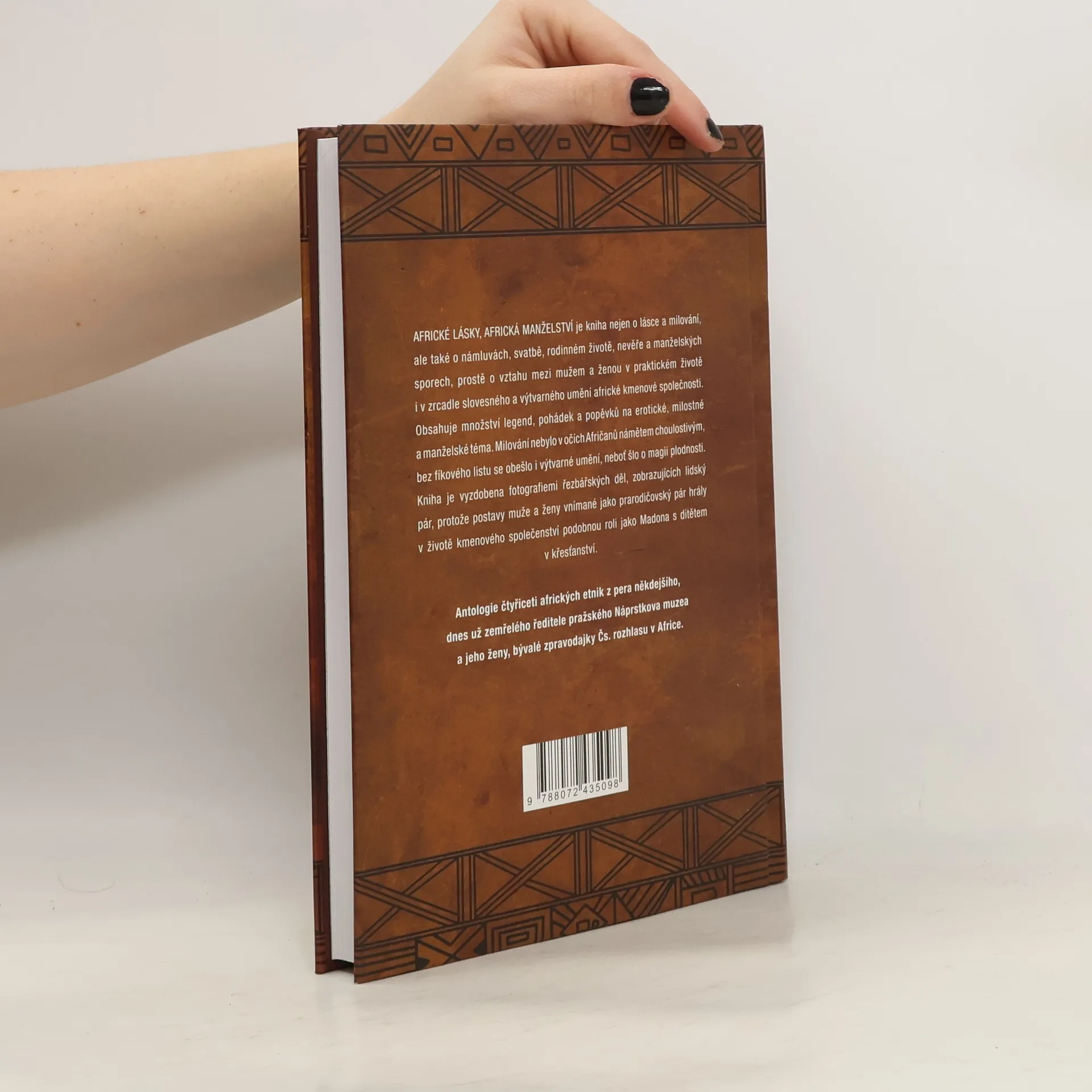Africké lásky, africká manželství v životě a v zrcadle afrického umění Antologie čtyřiceti afrických etnik z pera někdejšího, dnes už zemřelého ředitele pražského Náprstkova muzea a jeho ženy, bývalé zpravodajky Čs. rozhlasu v Africe. Kniha nejen o lásce a milování, ale také o námluvách, svatbě, rodinném životě, nevěře a manželských sporech, prostě o vztahu mezi mužem a ženou v praktickém životě i v zrcadle slovesného a výtvarného umění africké kmenové společnosti obsahuje množství legend, pohádek a popěvků na erotické, milostné a manželské téma. Milování nebylo v očích Afričanů námětem choulostivým, bez fíkového listu se obešlo i výtvarné umění, neboť šlo o magii plodnosti. Kniha je vyzdobena fotografiemi řezbářských děl, zobrazujících lidský pár, protože postavy muže a ženy vnímané jako prarodičovský pár hrály v životě kmenového společenství podobnou roli jako Madona s dítětem v křesťanství. 2. vydání
