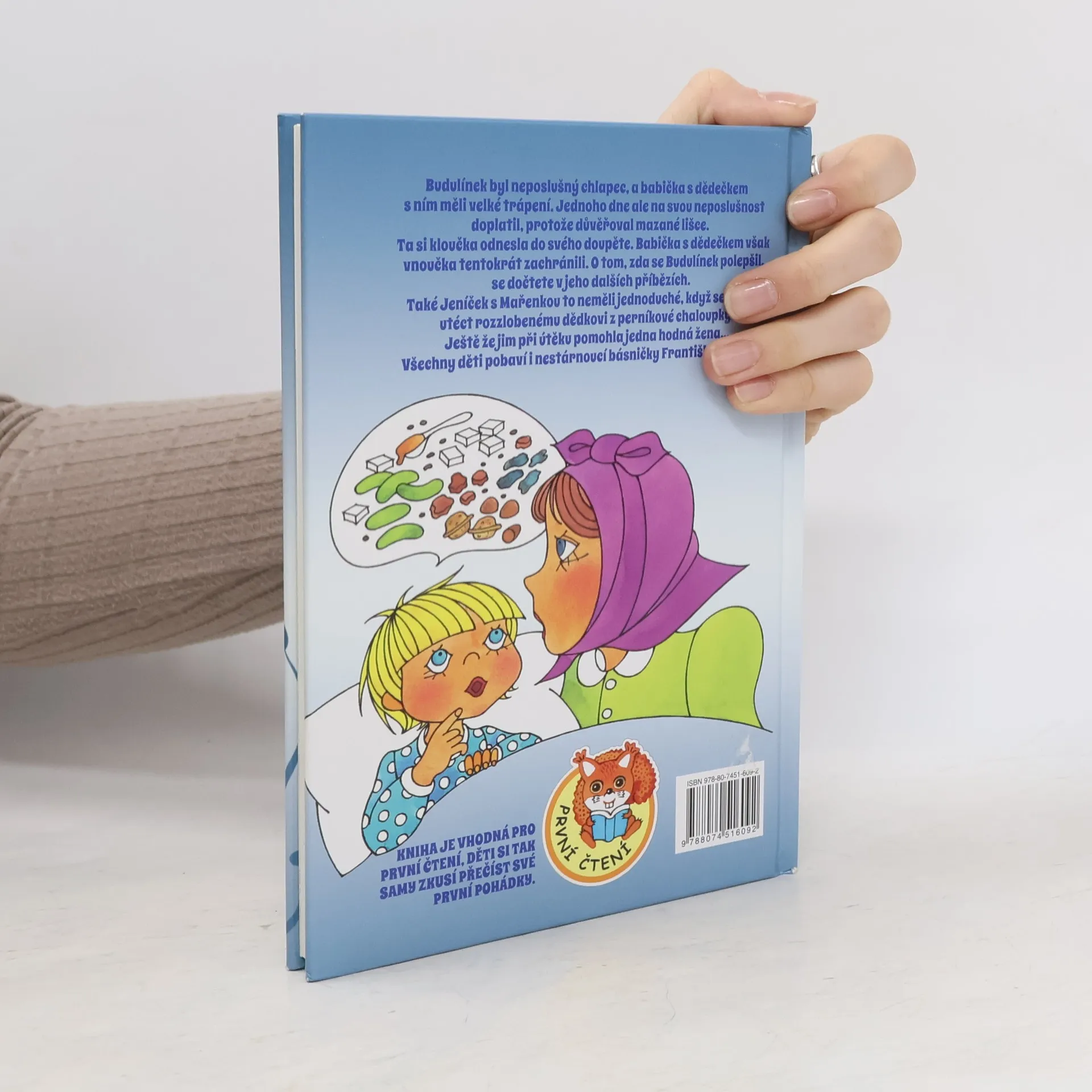 V pohádkové knize J. V. Plevy naleznete nejen příběh o neposlušném Budulínkovi, se kterým měla babička s dědečkem velké trápení, protože je neposlechl a důvěřoval mazané lišce, ale dočtete se také, jaké nové přátele mu babička s dědečkem pořídili nebo co se stalo, když Budulínek nerozumně mlsal. V druhém vyprávění zjistíte, jak se Jeníčkovi s Mařenkou podařilo utéct rozzlobenému dědkovi z perníkové chaloupky. Součástí knihy jsou také veršovaná vyprávění pohádek Františka Hrubína. Poutavými ilustracemi je zpestřila Vlasta Švejdová. Kniha je též vhodná jako první čtení.