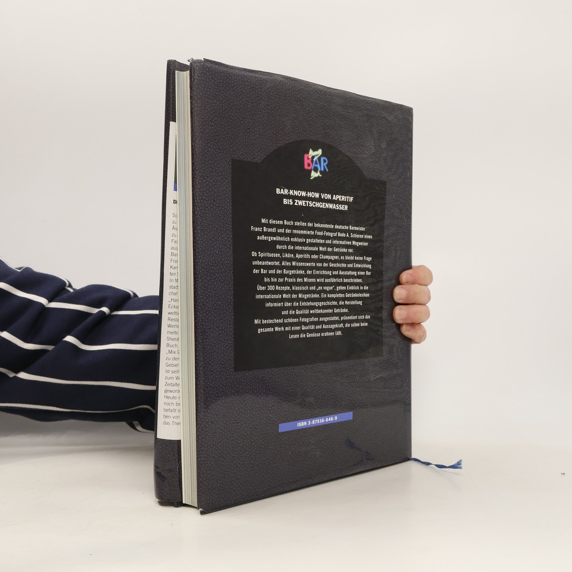 BAR-KNOW-HOW VON APERITIF BIS ZWETSCHGENWASSER Mit diesem Buch stellen der bekannteste deutsche Barmeister Franz Brandl und der renommierte Food-Fotograf Bodo A. Schieren einen außergewöhnlich exklusiv gestalteten und informativen Wegweiser durch die internationale Welt der Getränke vor. Ob Spirituosen, Liköre, Aperitifs oder Champagner, es bleibt keine Frage unbeantwortet. Alles Wissenswerte von der Geschichte und Entwicklung der Bar und der Bargetränke, der Einrichtung und Ausstattung einer Bar bis hin zur Praxis des Mixens wird ausführlich beschrieben. Über 300 Rezepte, klassisch und „en vogue“, geben Einblick in die internationale Welt der Mixgetränke. Ein komplettes Getränkelexikon informiert über die Entstehungsgeschichte, die Herstellung und die Qualität weltbekannter Getränke. Mit bestechend schönen Fotografien ausgestattet, präsentiert sich das gesamte Werk mit einer Qualität und Aussagekraft, die schon beim Lesen die Genüsse erahnen läßt.