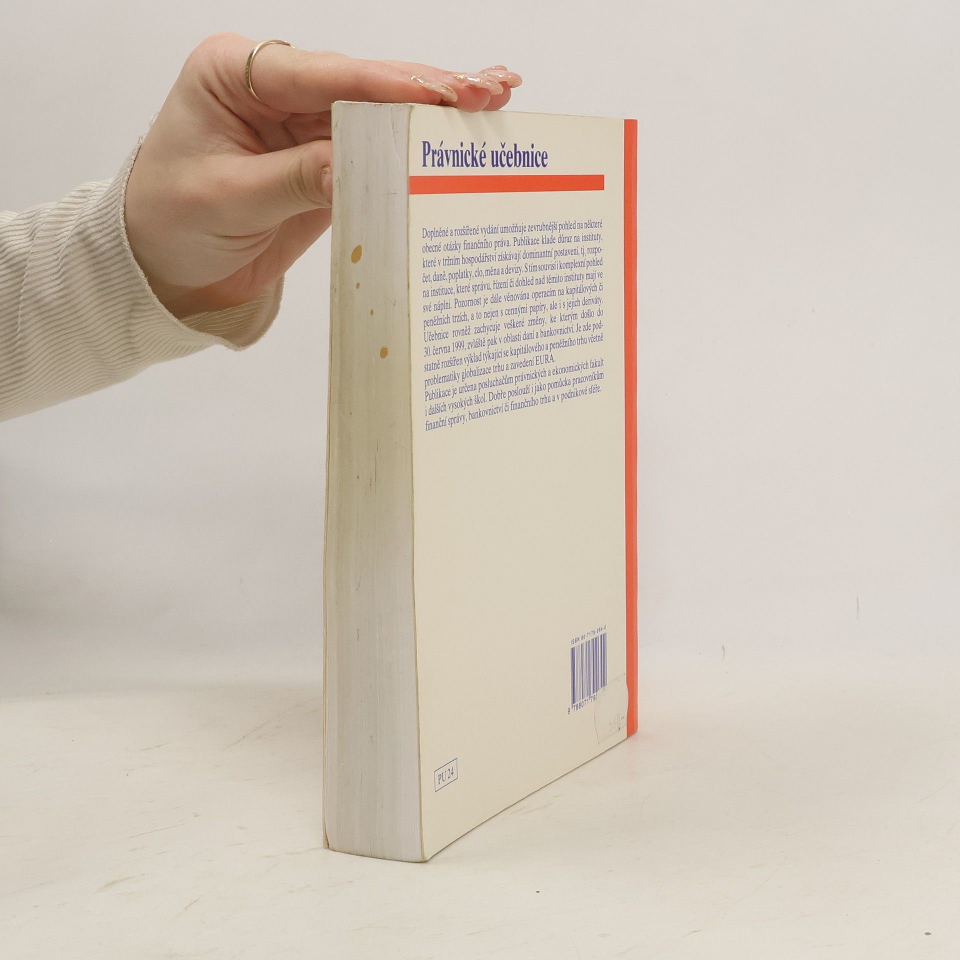 Publikace si klade za cíl ucelený pohled na oblast finančního práva, a to v tradičním členění na část obecnou a část zvláštní. Důraz je kladen zvláště na ty instituty, které v tržním hospodářství získávají dominantní postavení, tj. rozpočet, daně, měna a devizy. S tím souvisí i komplexní pohled na instituce, které správu, řízení či dohled nad těmito instituty mají ve své náplni. Publikace je určena především posluchačům právnických fakult, resp. dalších vysokých škol. Může však sloužit i jako pomůcka pracovníkům finanční správy, bankovnictví či finančního trhu i podnikatelům.