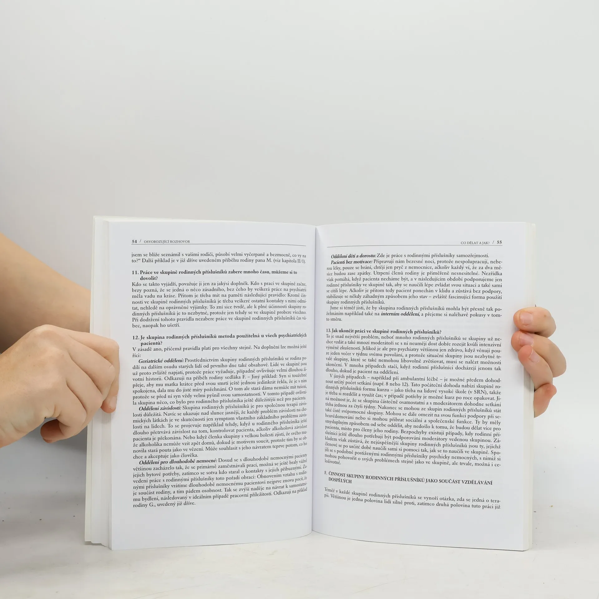 Psychicky nemocný v rodině. Kniha popisuje nesnáze a starosti rodinných příslušníků žijících v jedné domácnosti s psychicky nemocným člověkem. Kniha pojednává o novém přístupu k léčbě psychicky nemocných, kdy příbuzní pacienta nejsou nahlíženi jako viníci onemocnění, ale jako jeho součást, neboť i oni trpí pocity úzkosti, viny a osamění. Prací ve skupinách příbuzných psychicky nemocných se mohou s těmito pocity vyrovnat, mohou se poučit z příběhů ostatních a získat tak zpět sílu pomoci nemocnému. Autory jednotlivých kapitol jsou jednak profesionální psychiatři, poskytující rady pro zakládání těchto skupin a práci v nich, a dále též sami příbuzní, kteří uvádějí své konkrétní případy a zkušenosti s prací ve skupinách. Díky pestrému spektru pohledů na celou problematiku je kniha vhodná jak pro profesionální psychiatry, kterým poskytuje pohled z druhé strany, tak i pro příbuzné psychicky nemocných, kterým dává návod, jak se vyrovnat se svými pocity.