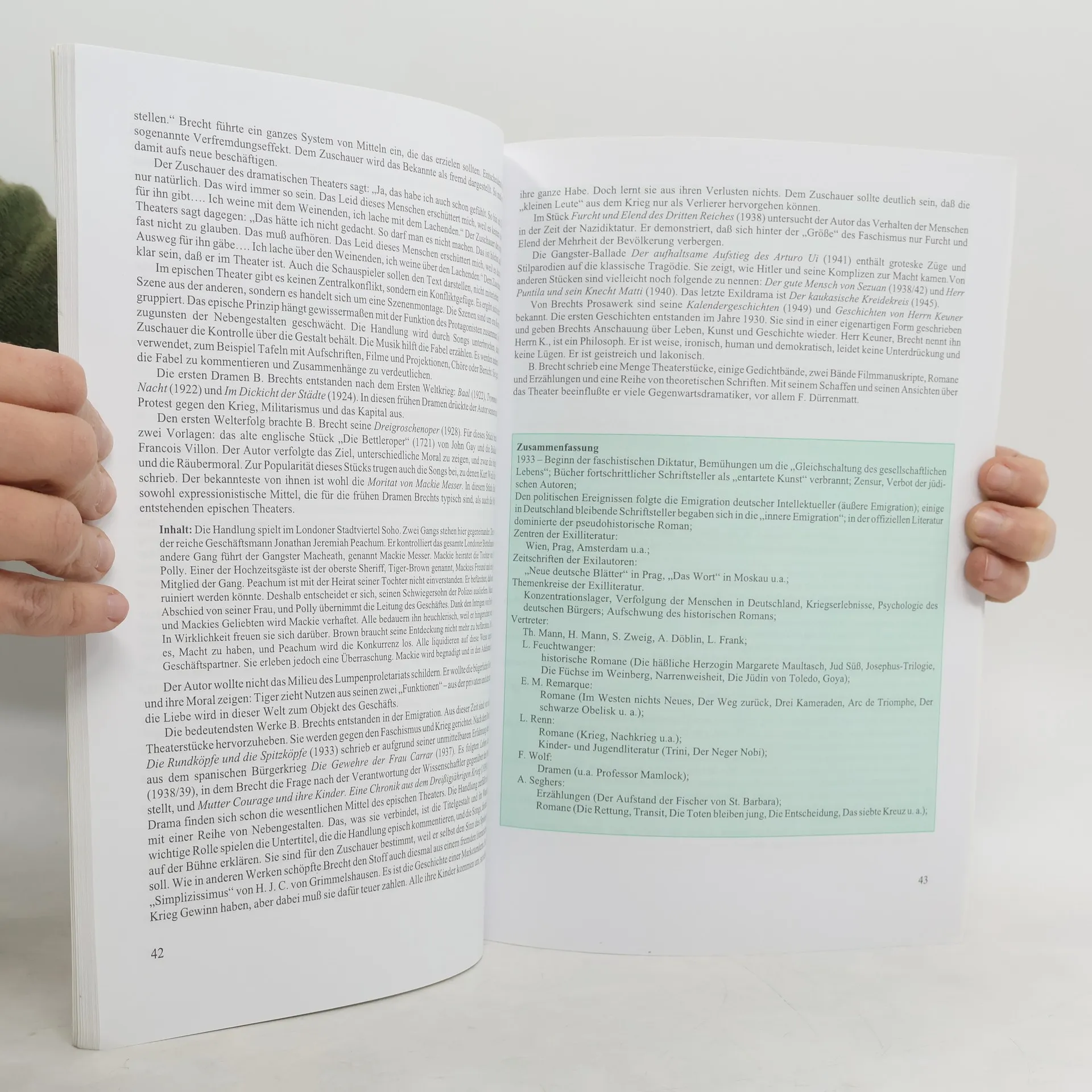 Přehled německé literatury s ukázkami je určen studentům, kteří se připravují na maturitu nebo přijímací zkoušky na VŠ. Učebnice navazuje na soubor učebnic němčiny od stejné autorky. V první části obsahuje přehled vývoje německé literatury od konce 19.stol do současnosti se stručným hodnocením děl a autorů. Druhá část obsahuje ukázky z literárních děl. V závěru jsou uvedeny vzorové testy, vysvětlení základních literárních pojmů, český překlad názvů vybraných literárních děl a rejstřík.