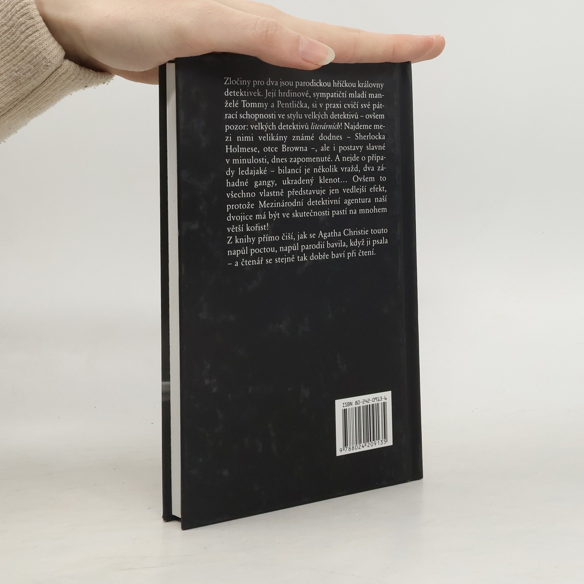 Zločiny pro dva jsou parodickou hříčkou královny detektivek. Její hrdinové, veselí, bohatí a sympatičtí mladí manželé Tommy a Pentlička, si v praxi cvičí své pátrací schopnosti ve stylu velkých detektivů – ovšem pozor: „velkých detektivů“ literárních! Najdeme mezi nimi velikány známé dodnes – Sherlocka Holmese, otce Browna –, ale i postavy slavné v minulosti, dnes již zapomenuté. A nejde o případy ledajaké – několik vražd, dva záhadné gangy, ukradený klenot… Ale to všechno přitom představuje jen vedlejší efekt, protože Mezinárodní detektivní agentura naší dvojice je ve skutečnosti pastí na mnohem větší kořist! Z knihy přímo čiší, jak se Agatha Christie touto napůl poctou, napůl parodií bavila, když ji psala – a čtenář se stejně tak dobře baví při čtení.... celý text