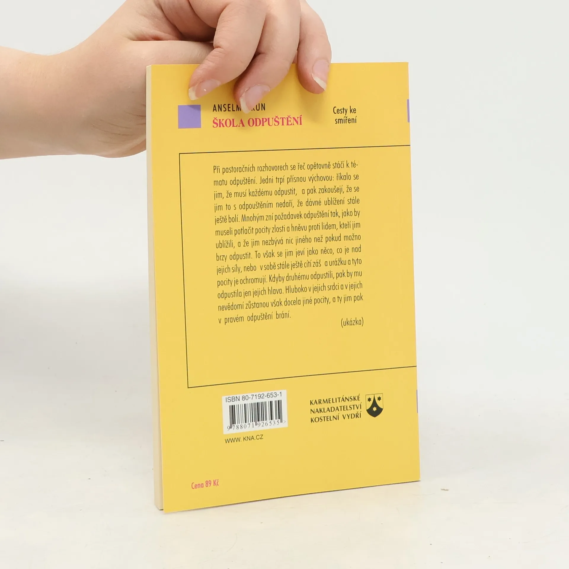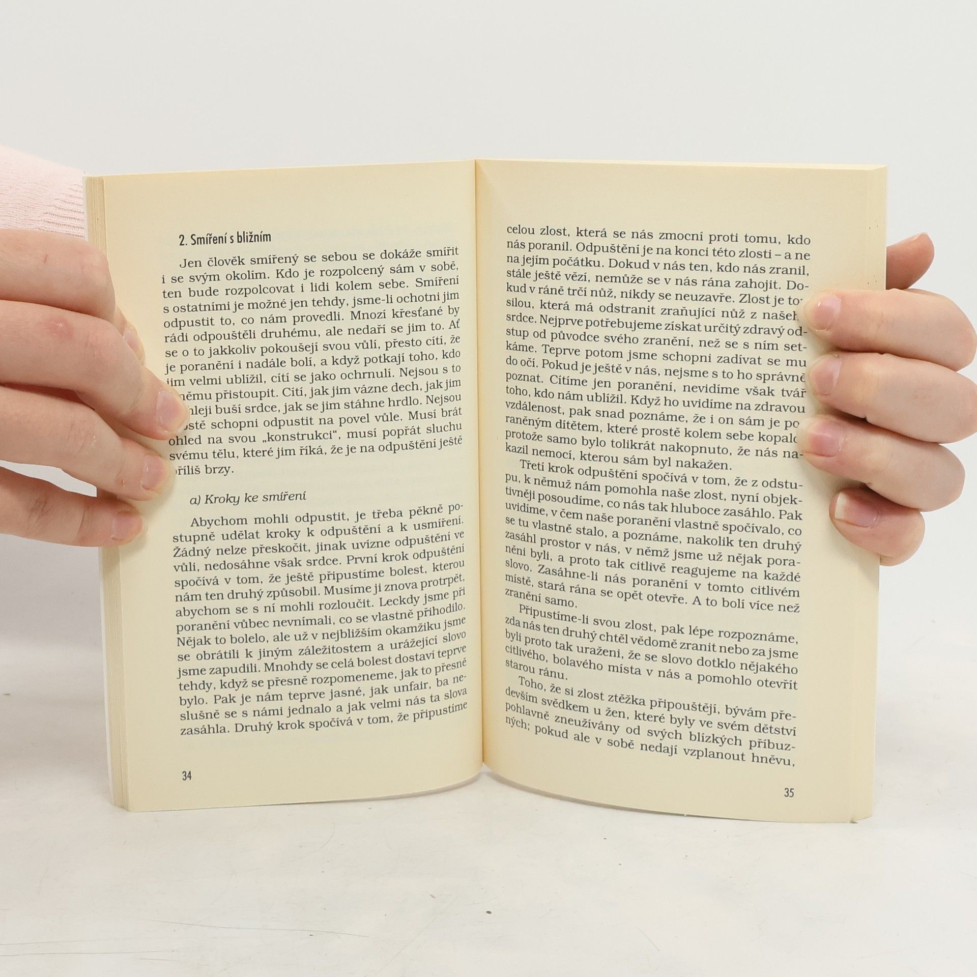 Cesty ke smíření. Při pastoračních rozhovorech se řeč opětovně stáčí k tématu odpuštění. Jedni trpí přísnou výchovou: říkalo se jim, že musí každému odpustit – a pak zakoušejí, že se jim to s odpouštěním nedaří, že dávné ublížení stále ještě bolí. Mnohým zní požadavek odpuštění tak, jako by museli potlačit pocity zlosti a hněvu proti lidem, kteří jim ublížili, a že jim nezbývá nic jiného než pokud možno brzy odpustit. To však se jim jeví jako něco, co je nad jejich síly, neboť v sobě stále ještě cítí zášť a urážku a tyto pocity je ochromují. Kdyby druhému odpustili, pak by mu odpustila jen jejich hlava. Hluboko v jejich srdci a v jejich nevědomí zůstanou však zcela jiné pocity, a ty jim v pravém odpuštění brání.